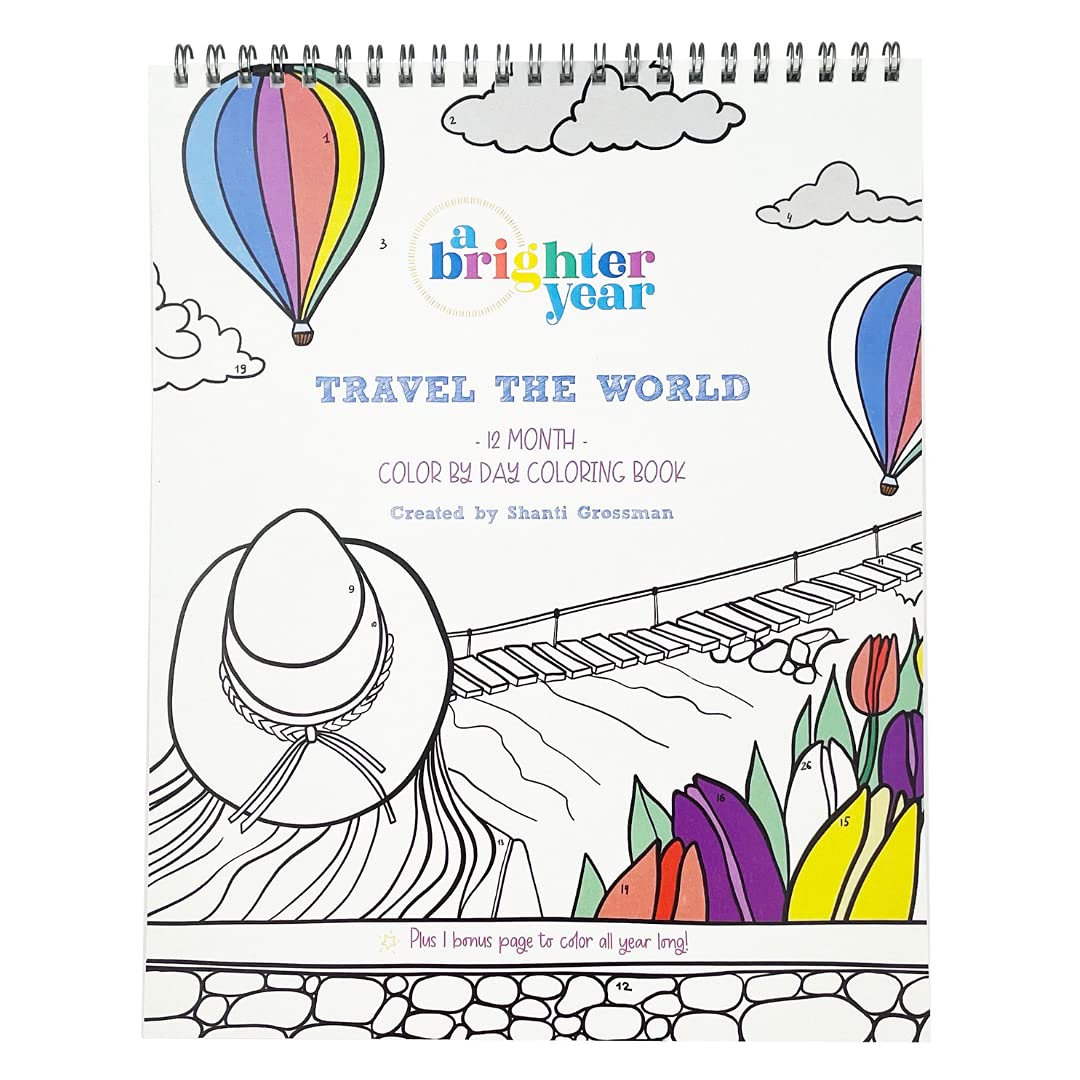 A Brighter Year -Adult Coloring Perpetual Calendar – Creative & Mindful Travel Color by Numbers for Adults & Kids - Color Sections for Each Day – Thick Nice Paper + Lay Flat Design – Marker & Pen Safe