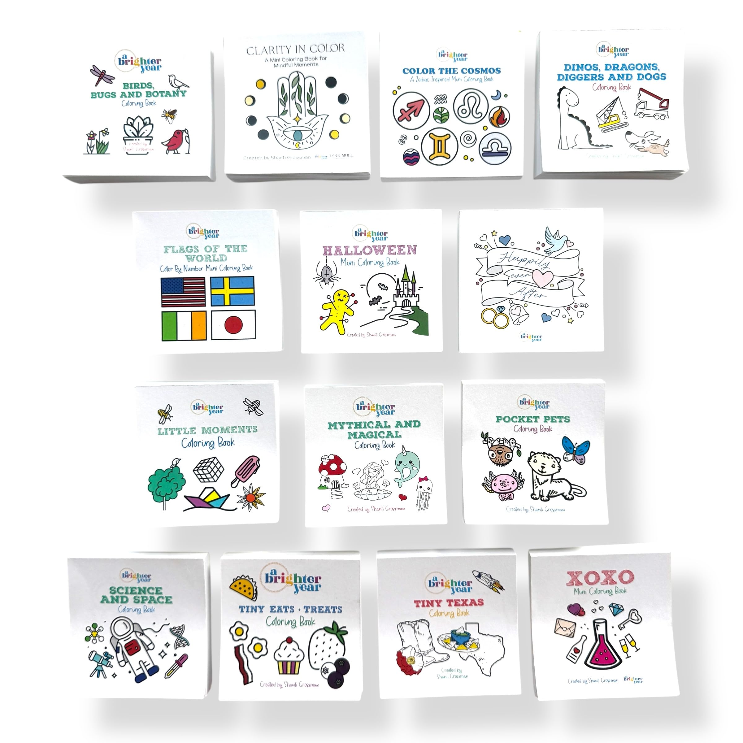A Brighter Year The Original Adult Mini Coloring Book - 14 Piece Variety Pack - 3” x 3” Pocket Size, 50 Pages, Lay Flat Binding, Thick Paper, No Bleeding - Stress/Anxiety Relief - Relaxation, Gift
