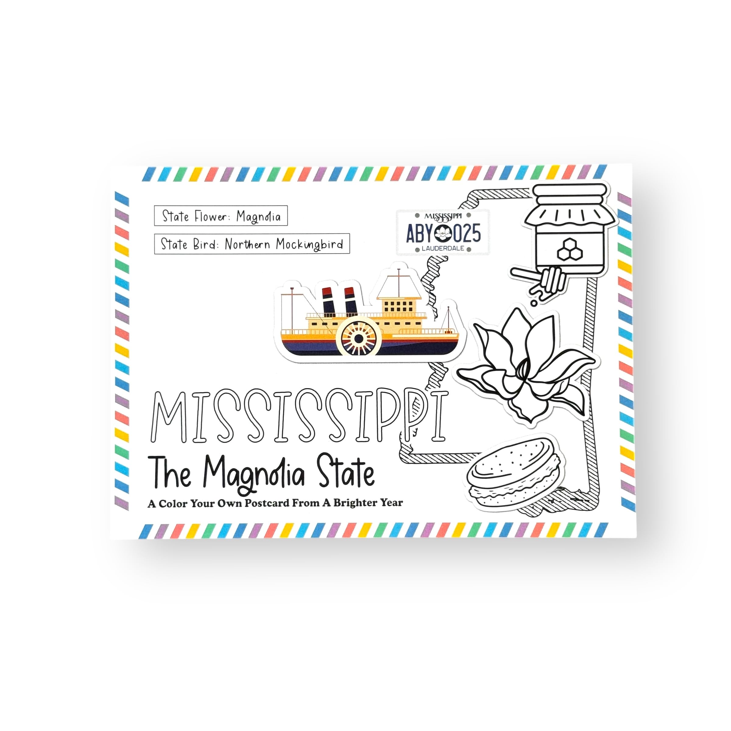 A Brighter Year Color Your Own Postcard - Mississippi State - 5"x 7", Premium Quality, Sturdy Cardstock, Sized for Mailing, Illustrations - Stress & Anxiety Relief