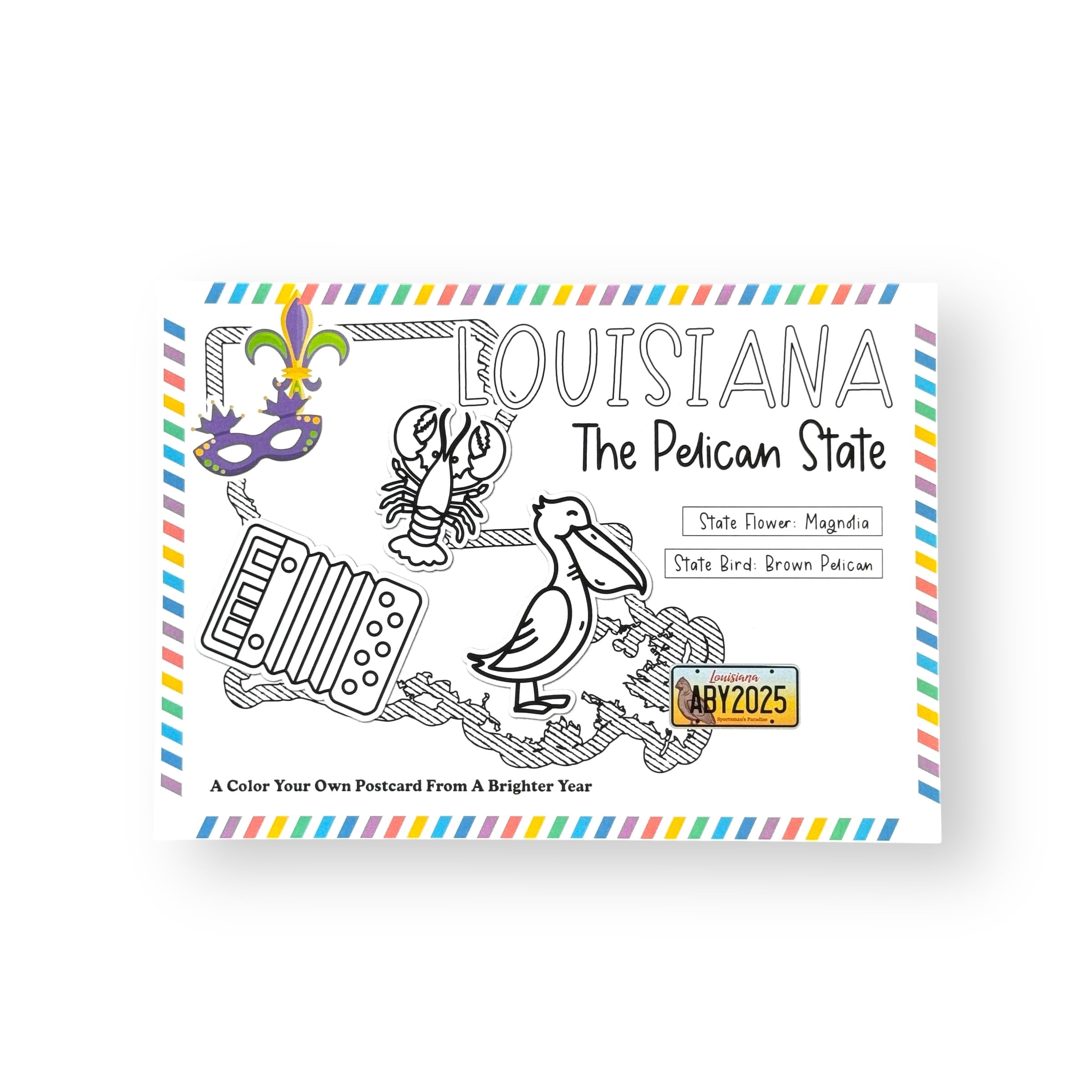 A Brighter Year Color Your Own Postcard - Louisiana State - 5"x 7", Premium Quality, Sturdy Cardstock, Sized for Mailing, Illustrations - Stress & Anxiety Relief