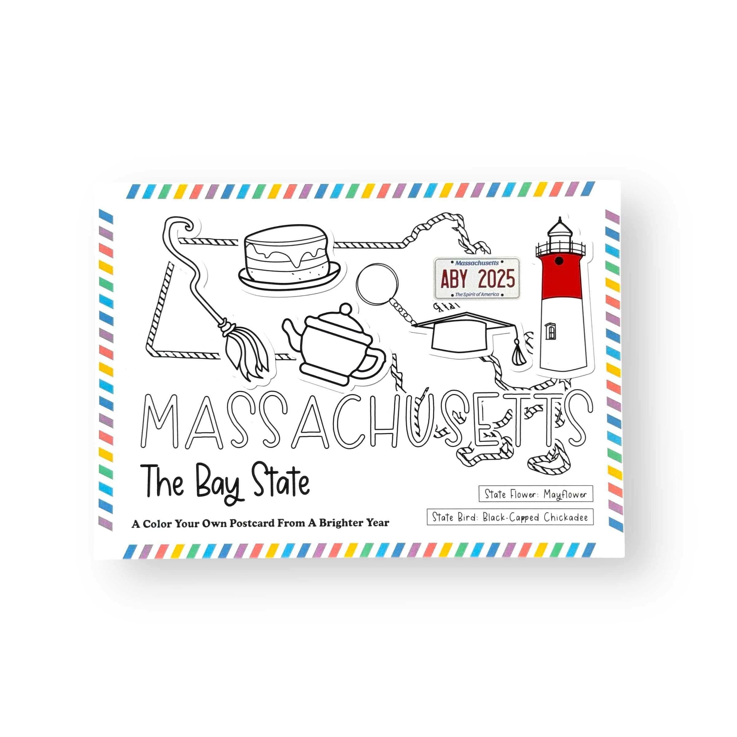 A Brighter Year Color Your Own Postcard - Massachusetts State - 5"x 7", Premium Quality, Sturdy Cardstock, Sized for Mailing, Illustrations - Stress & Anxiety Relief