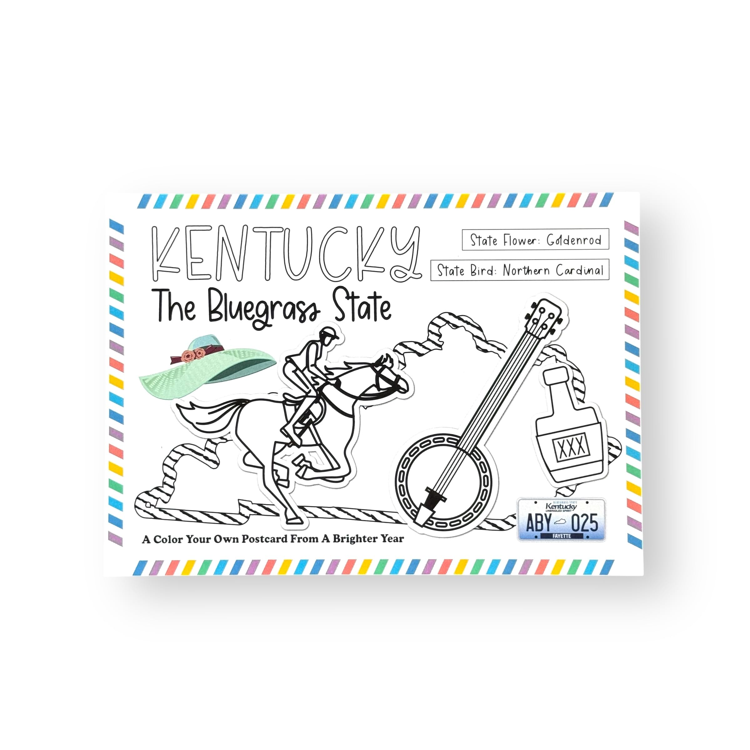 A Brighter Year Color Your Own Postcard - Kentucky State - 5"x 7", Premium Quality, Sturdy Cardstock, Sized for Mailing, Illustrations - Stress & Anxiety Relief