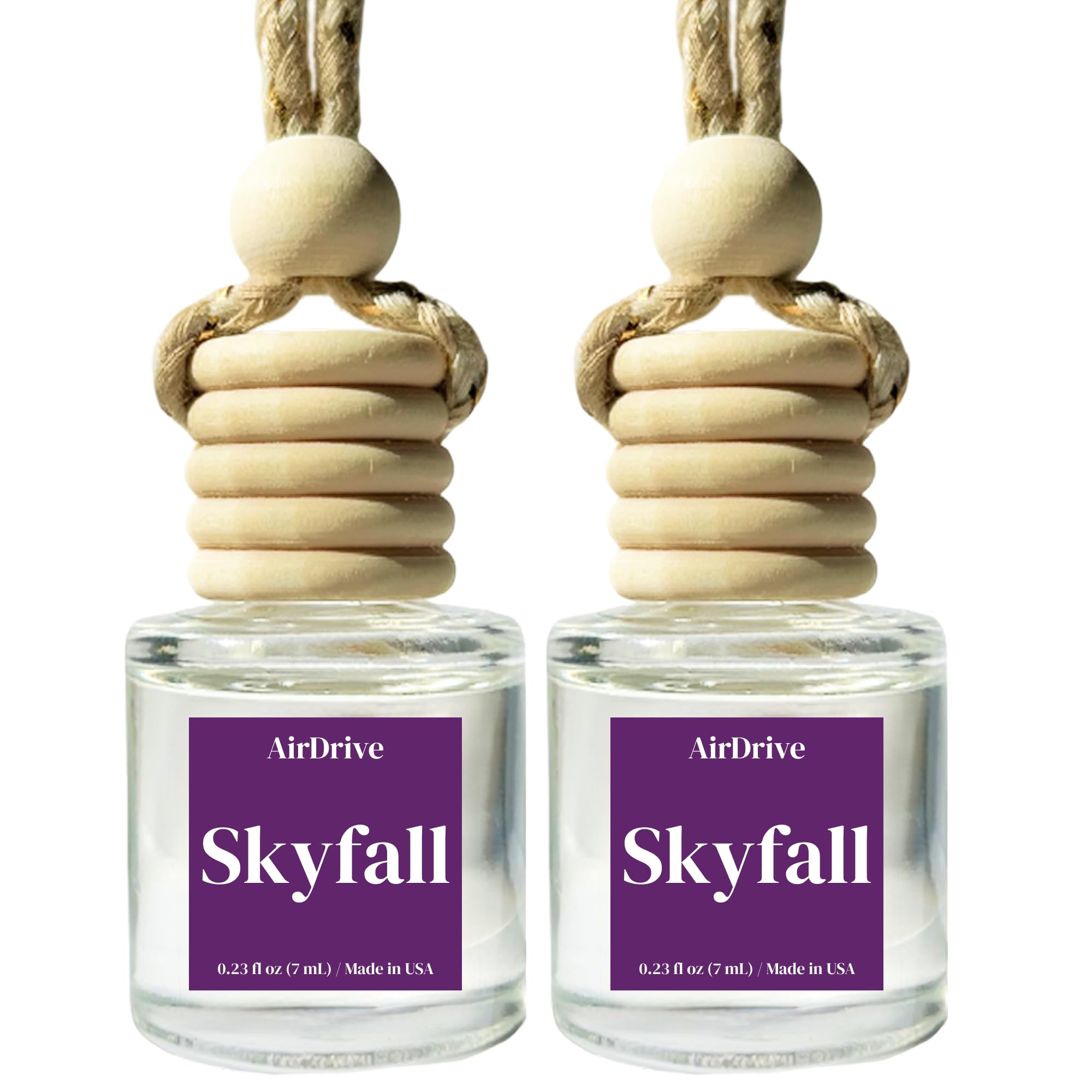 AirDrive Long Lasting Car Air Fresheners, Fragrance Oil Hanging Oil Diffuser With Wooden Cap, Non Toxic Rearview Mirror Car Accessory, Made in USA, Odor Eliminator For Car (Skyfall 2 Pack)