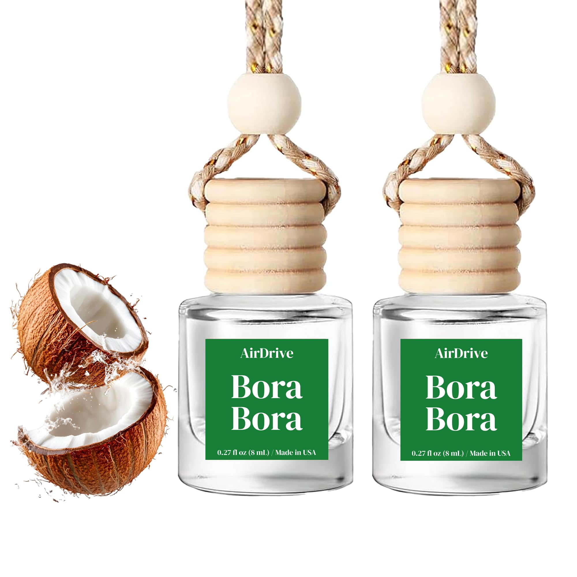 Car Air Freshener Bora Bora 2 Pack – Tropical Aroma Diffuser, Long-Lasting Coconut & Citrus Hanging Oil Diffuser with Wooden Cap, Non-Toxic Car Air Freshener For Women, Made in USA