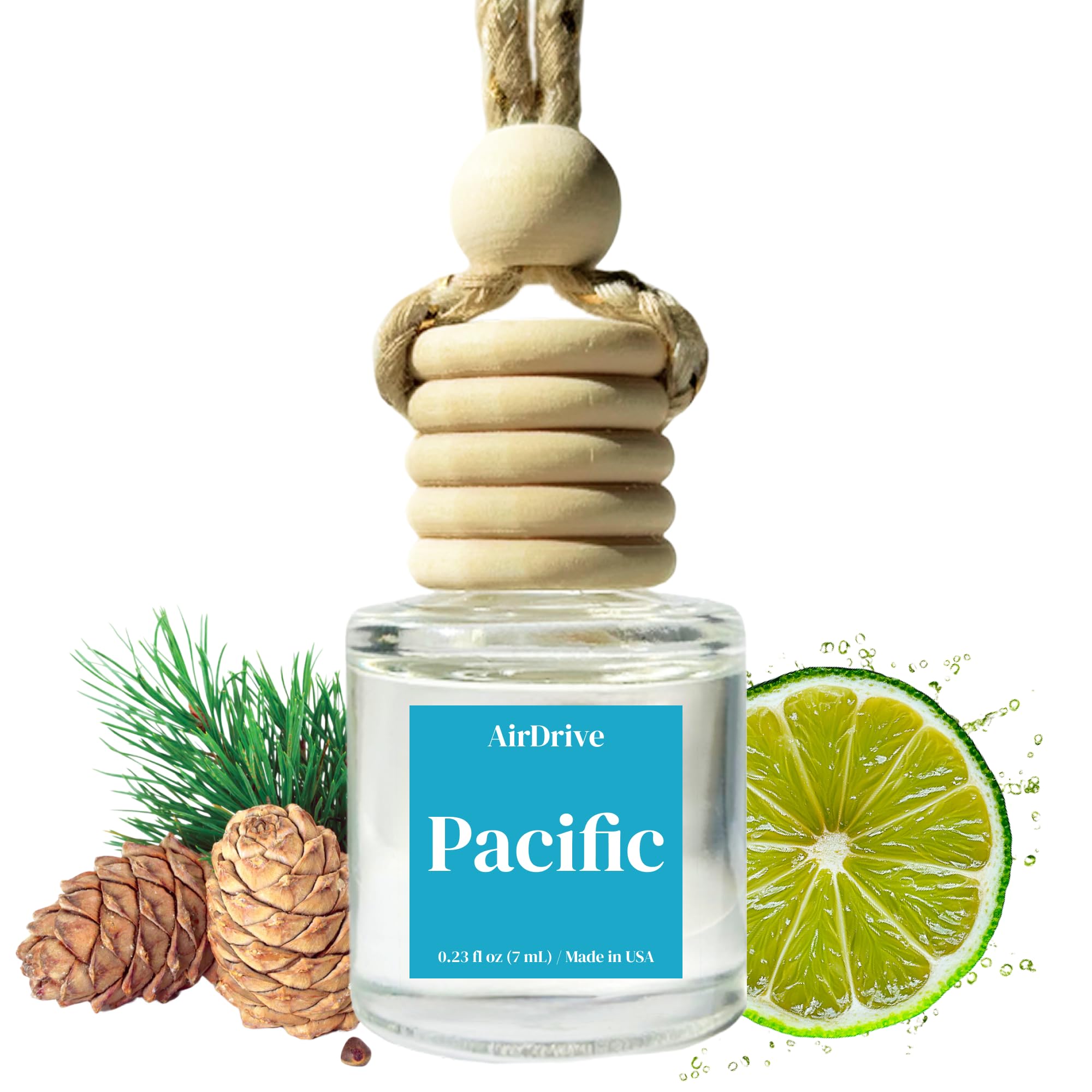 Car Air Freshener Pacific – Ocean & Citrus Aroma Diffuser, Long-Lasting Hanging Oil Diffuser with Wooden Cap, Non-Toxic Rearview Mirror Accessory, Made in USA