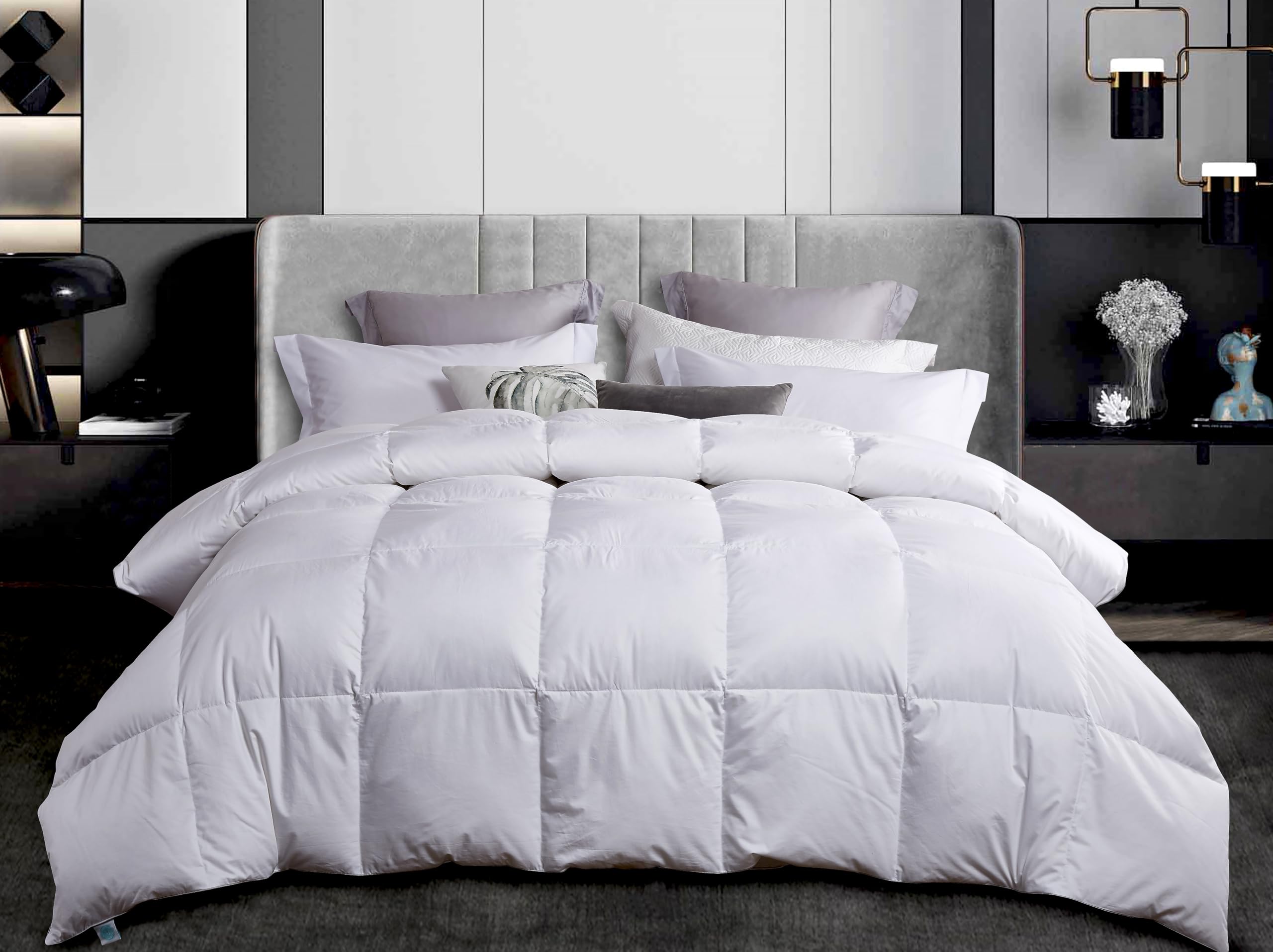 ComfyDown Goose Down White Comforter - Made in USA - 100% Egyptian Cotton 600 Thread Count Cover, 800+ Fill Power, Light Weight, All Season Washable Duvet Insert with Corner tabs - Queen