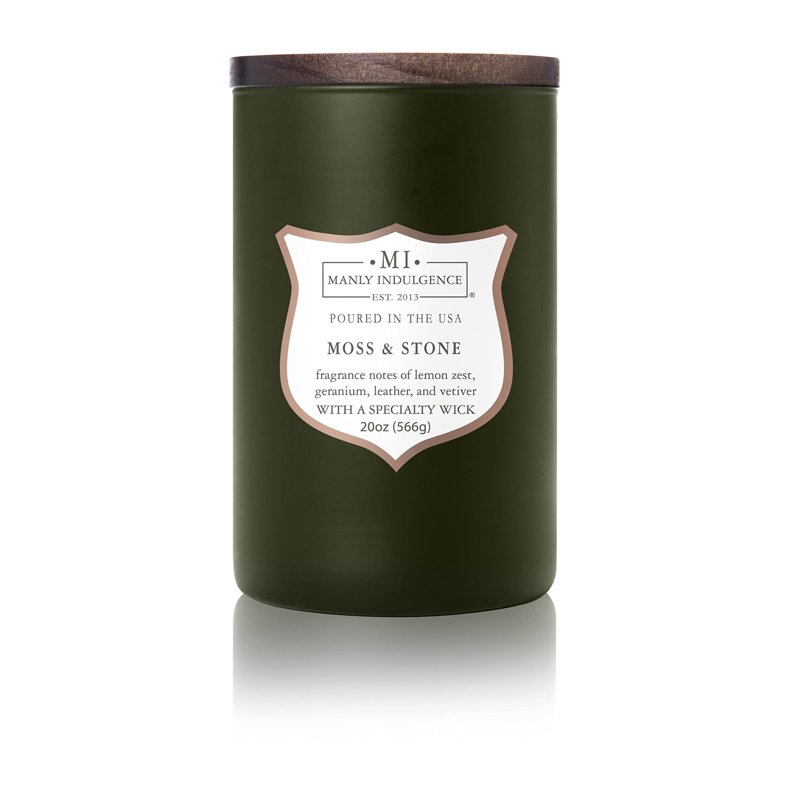 Manly Indulgence Green Moss & Stone Scented Jar Candle, Signature Collection, Wood Wick, Green, 20 oz - Up to 120 Hours Burn