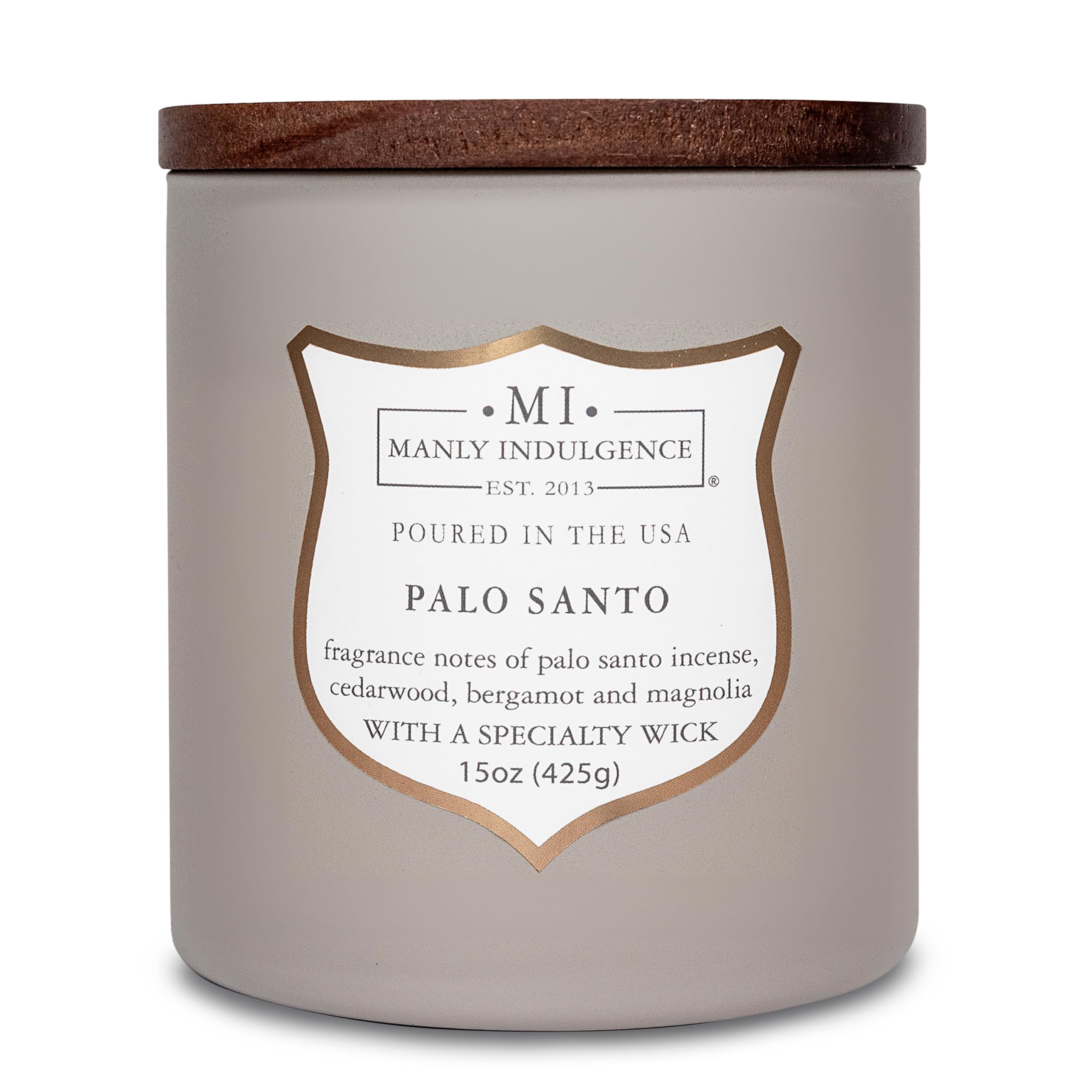 Manly Indulgence Palo Santo Scented Candles for Men, 15 oz Wooden Wick, Fathers Day Candle, 60H Burn, Candles for Home Scented - Made in The USA