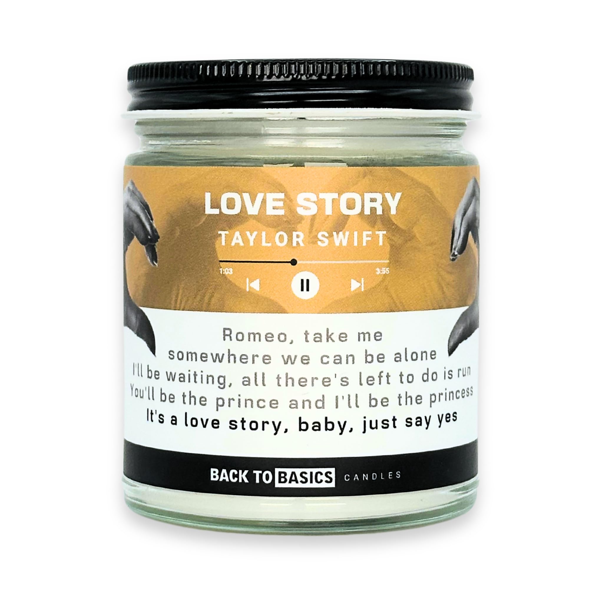 Back to Basics | Love Story - 9oz Vegan Soy Coconut Wax Lavender Scented Candle for Home Decor, Birthday Gifts for Women, Men, Best Friend | Relaxing Aromatherapy Made in USA