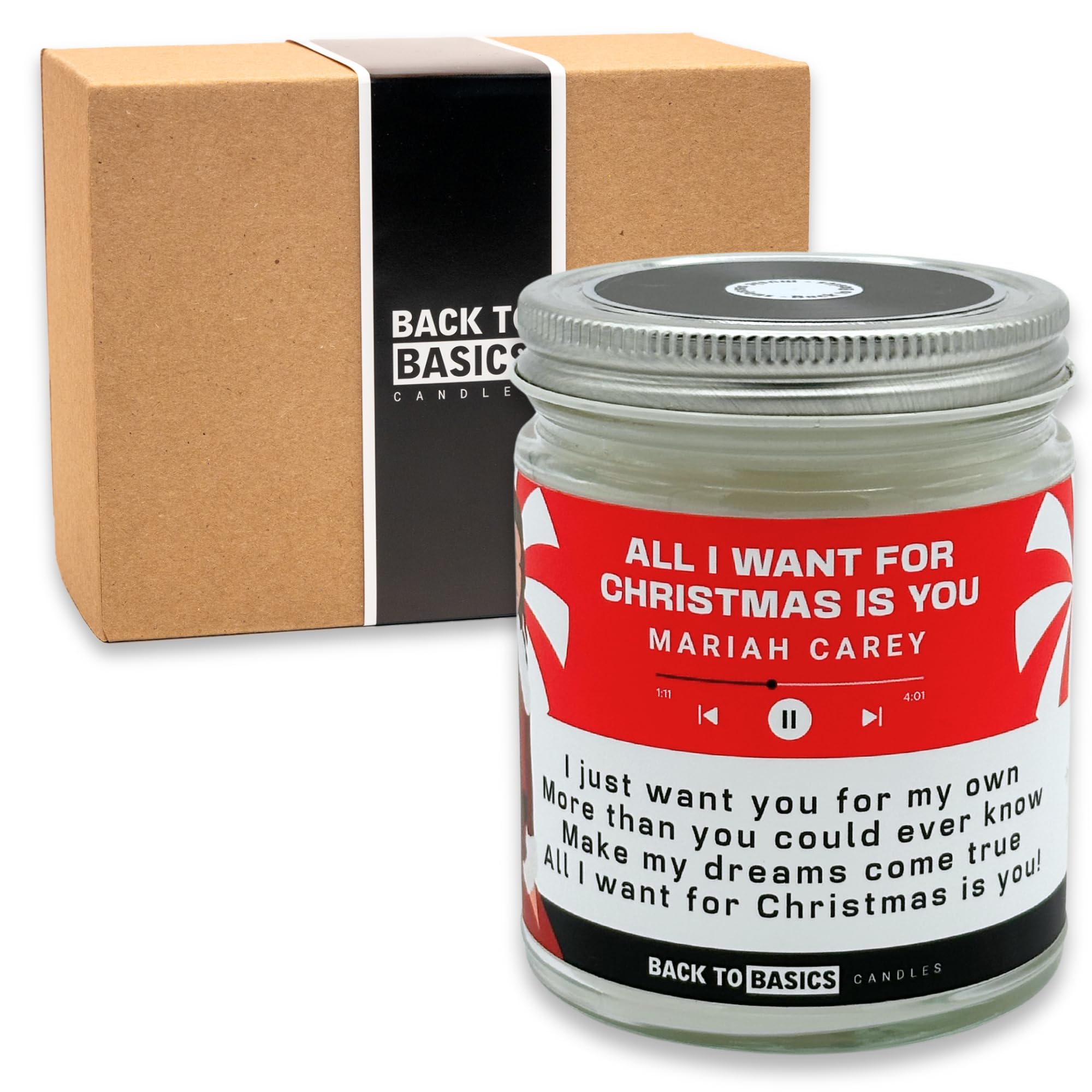 Back to Basics Candles | All I Want for Christmas - 9oz Soy Wax Xmas Tree Scented Candle for Home Decor, Birthday Gifts for Women, Men, Best Friend | Relaxing Aromatherapy Made in USA