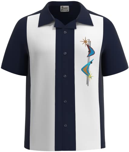 Mens Hawaiian Shirt Short Sleeve - Cuban Collar - Made in USA - Navy Atomic