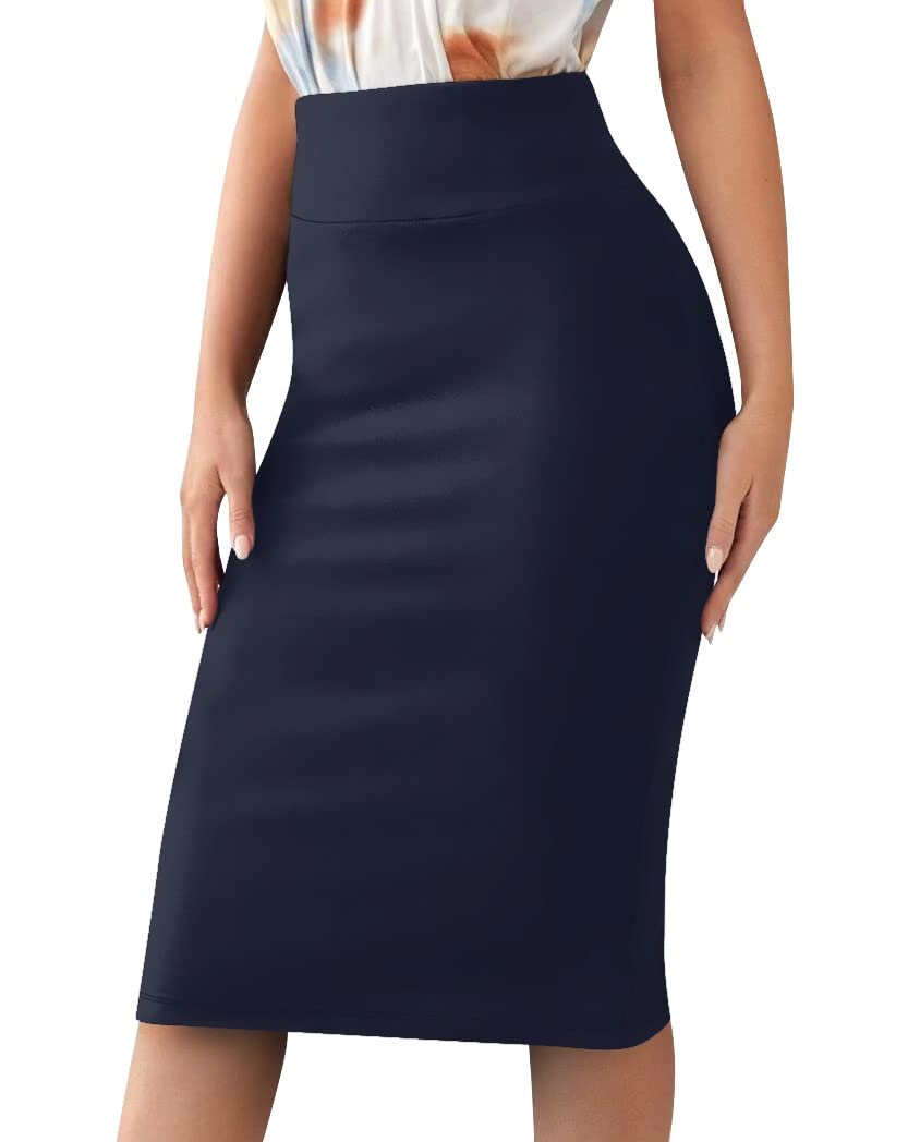 Sweet Hearts Women’s Basic Stretch Pencil Skirt- Regular & Plus Size- Below Knee Office Midi Bodycon Nylon Skirt Made in USA
