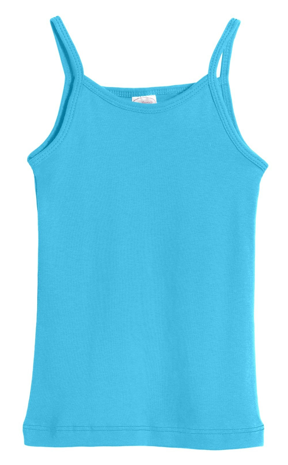 Made in USA Big Girls' Cotton Camisole Cami Tank Top T-Shirt Tee Tshirt Spaghetti Straps Summer Play School Sports Sensitive Skin SPD Sensory Sensitive Clothing