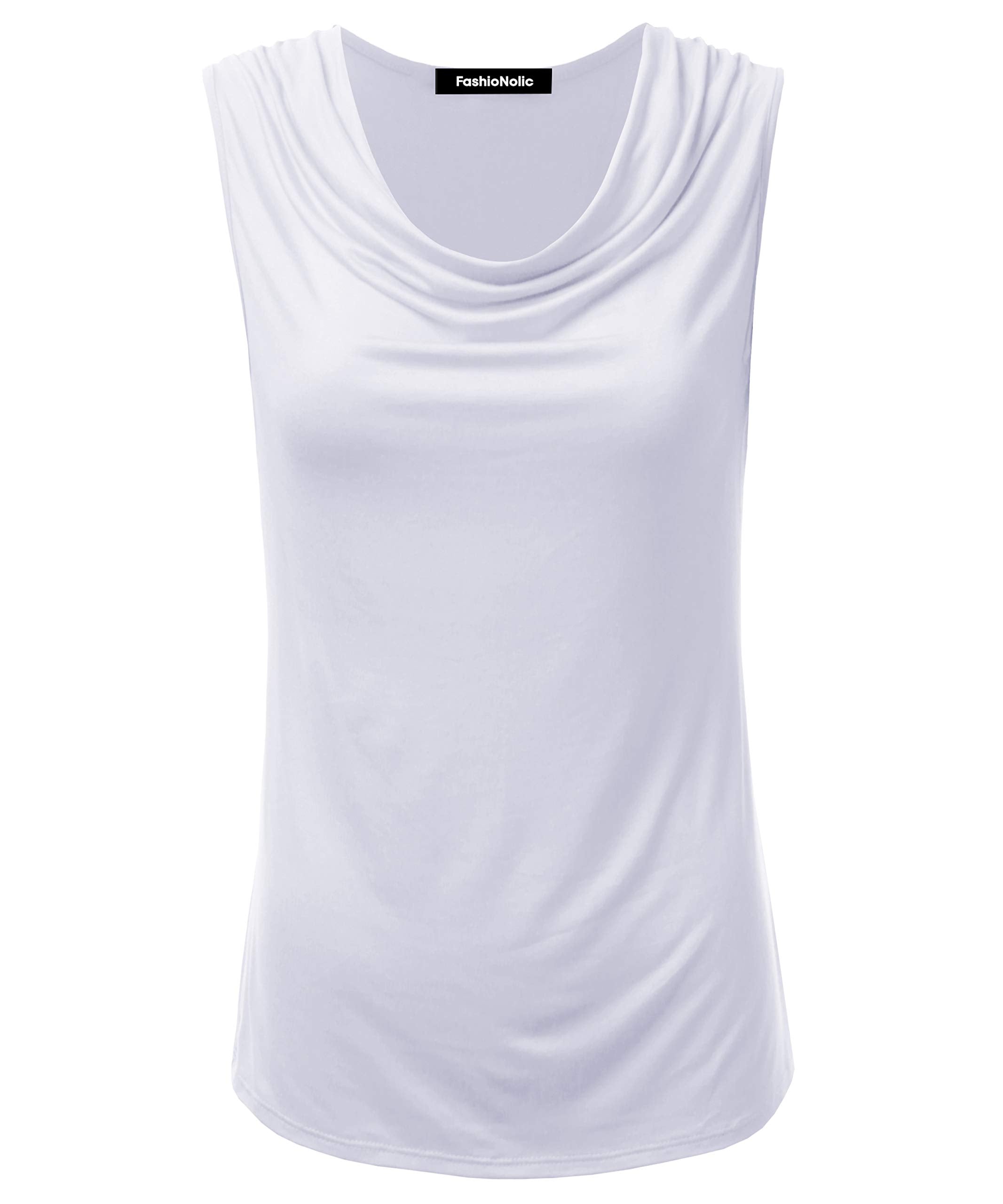 FASHIONOLIC Women's Cowl Neck Ruched Draped Sleeveless Stretchy Blouse Casual Tank Top (Made in USA)