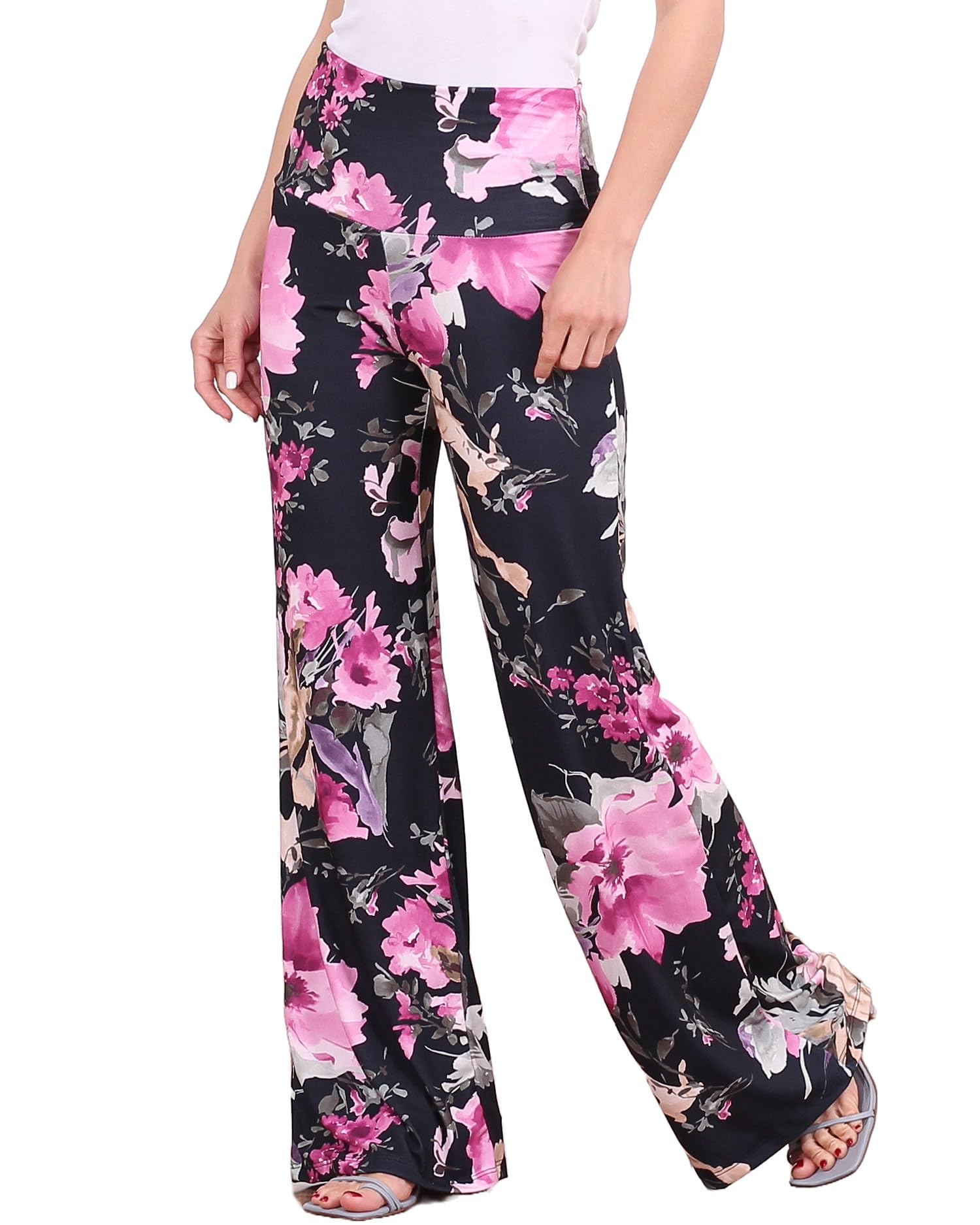 Popana Palazzo Pants for Women Casual Summer Wide Leg Beach Pants Plus Size Made in USA X-Large DT52 Floral