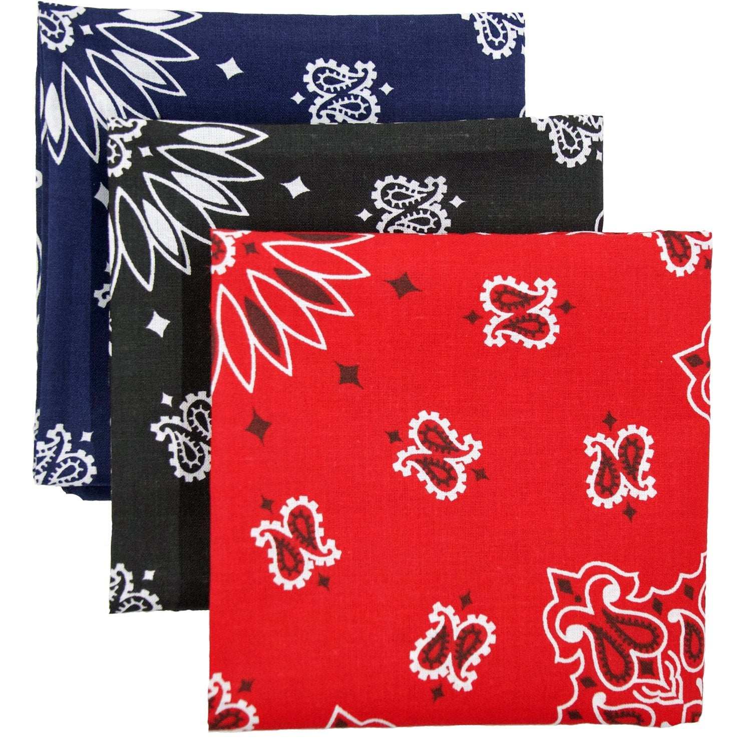 B53 100% Cotton Bandanas Made in the USA - Stylish Headband, Handkerchief, Scarf - 21 inch x 21 inch (Red, Navy, Black (6-pack))
