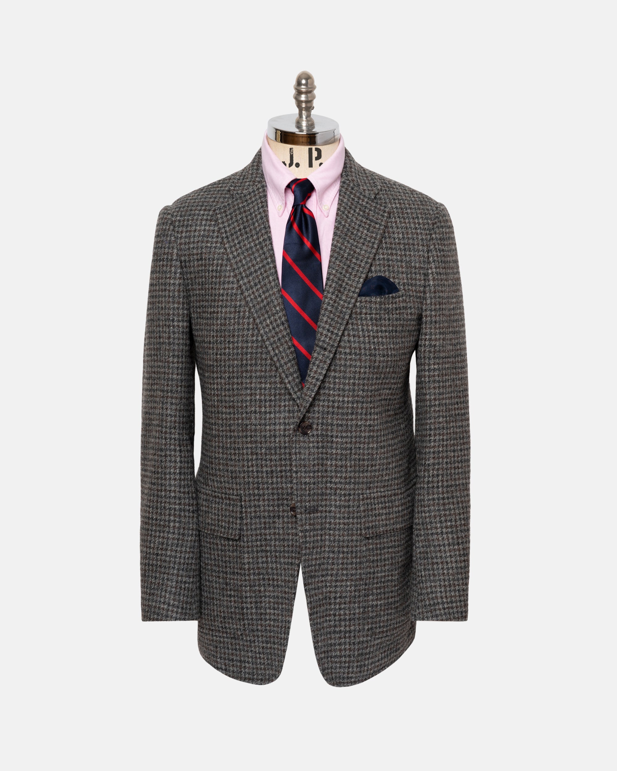 Made-in-USA Grey & Brown Houndstooth Cheviot Tweed Sport Coat - Custom Make