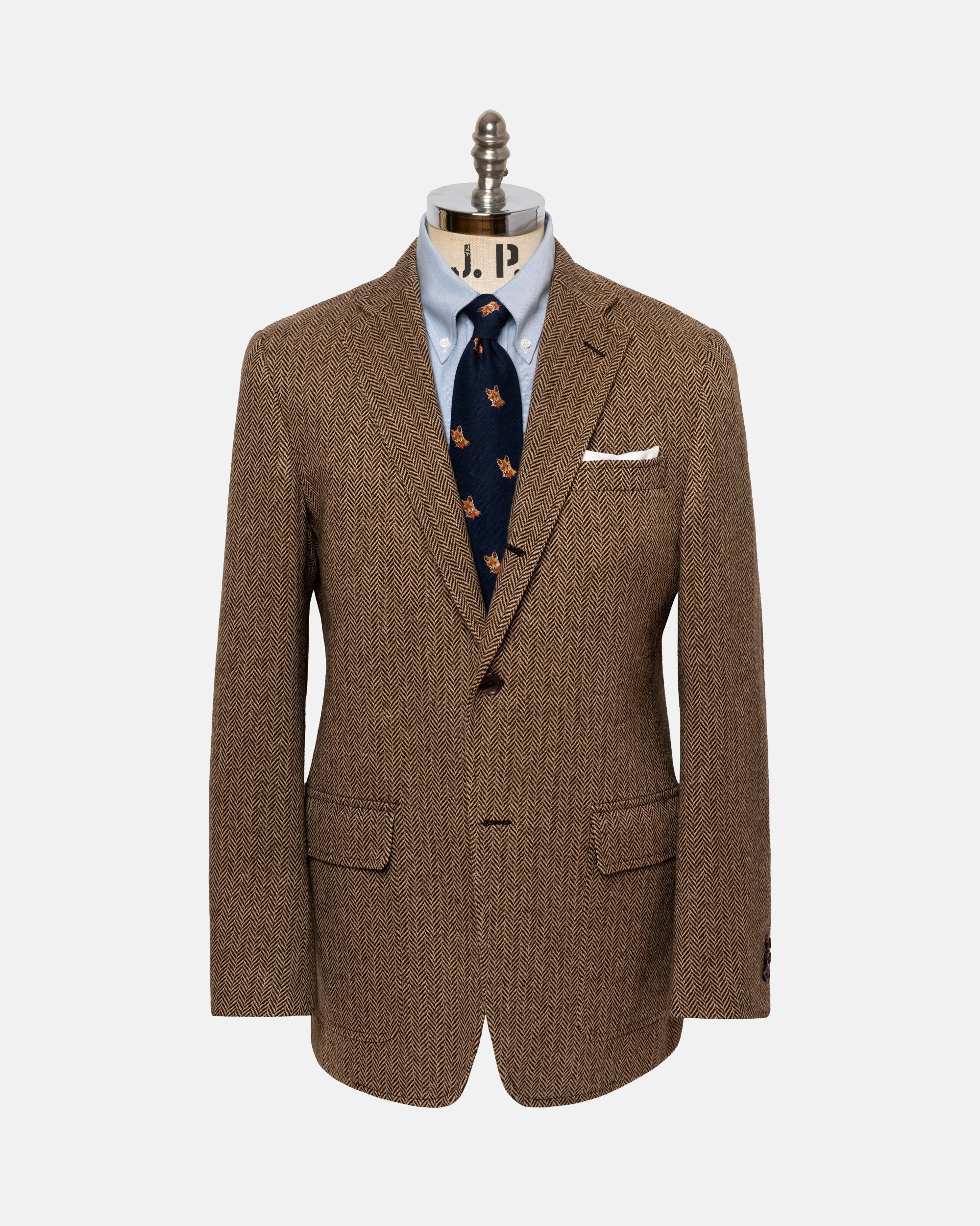 Made-in-USA Brown & Tan Herringbone Lambswool Sport Coat - Custom Make