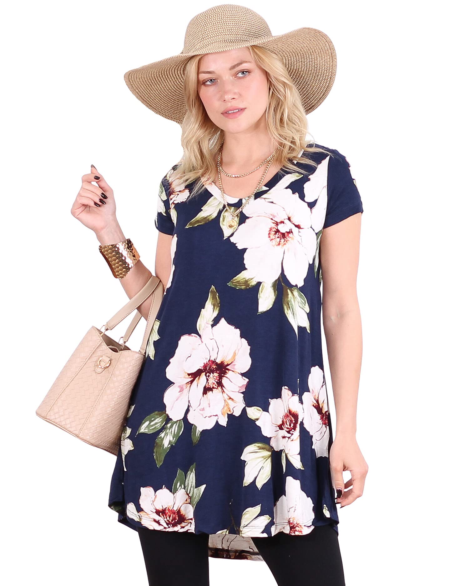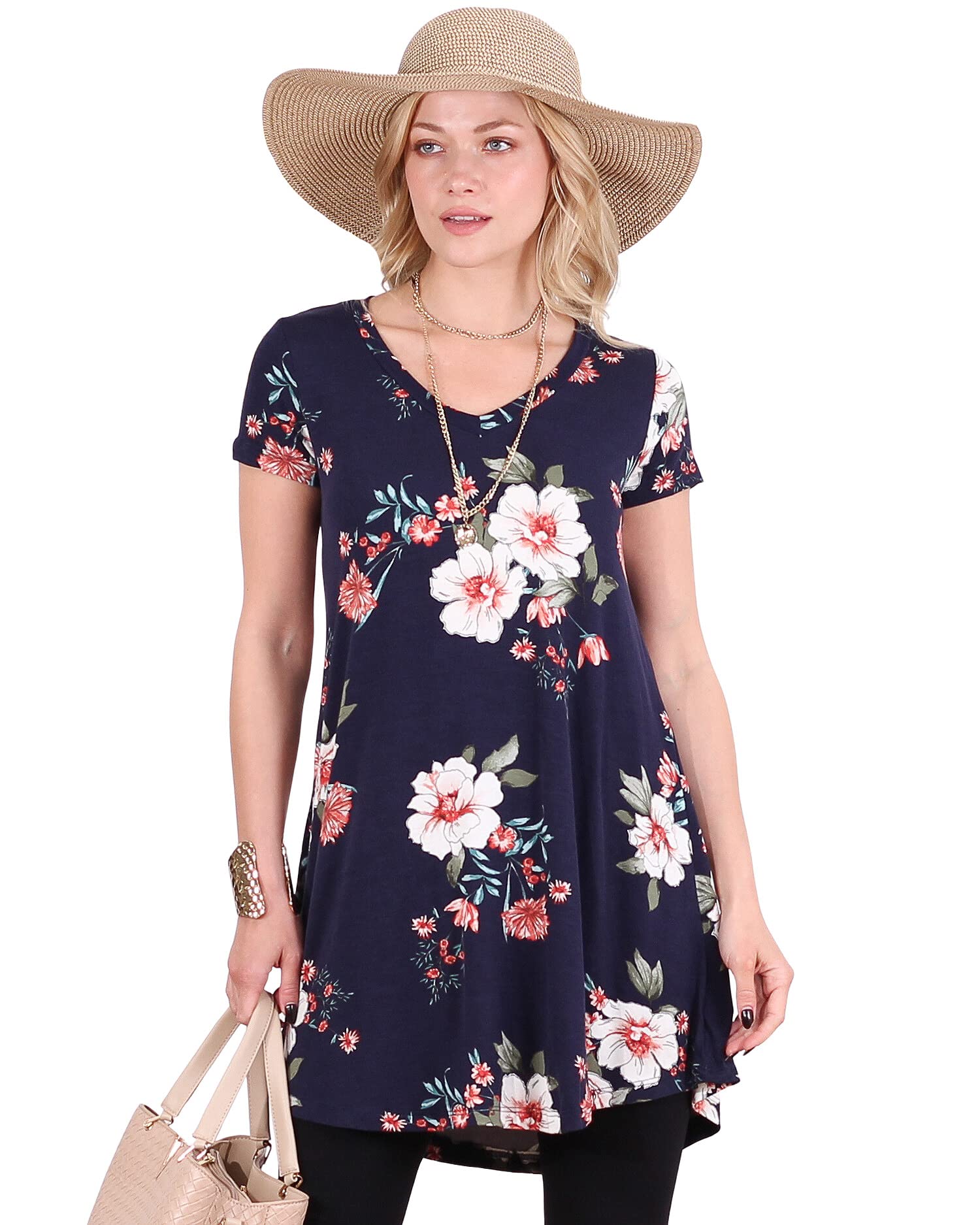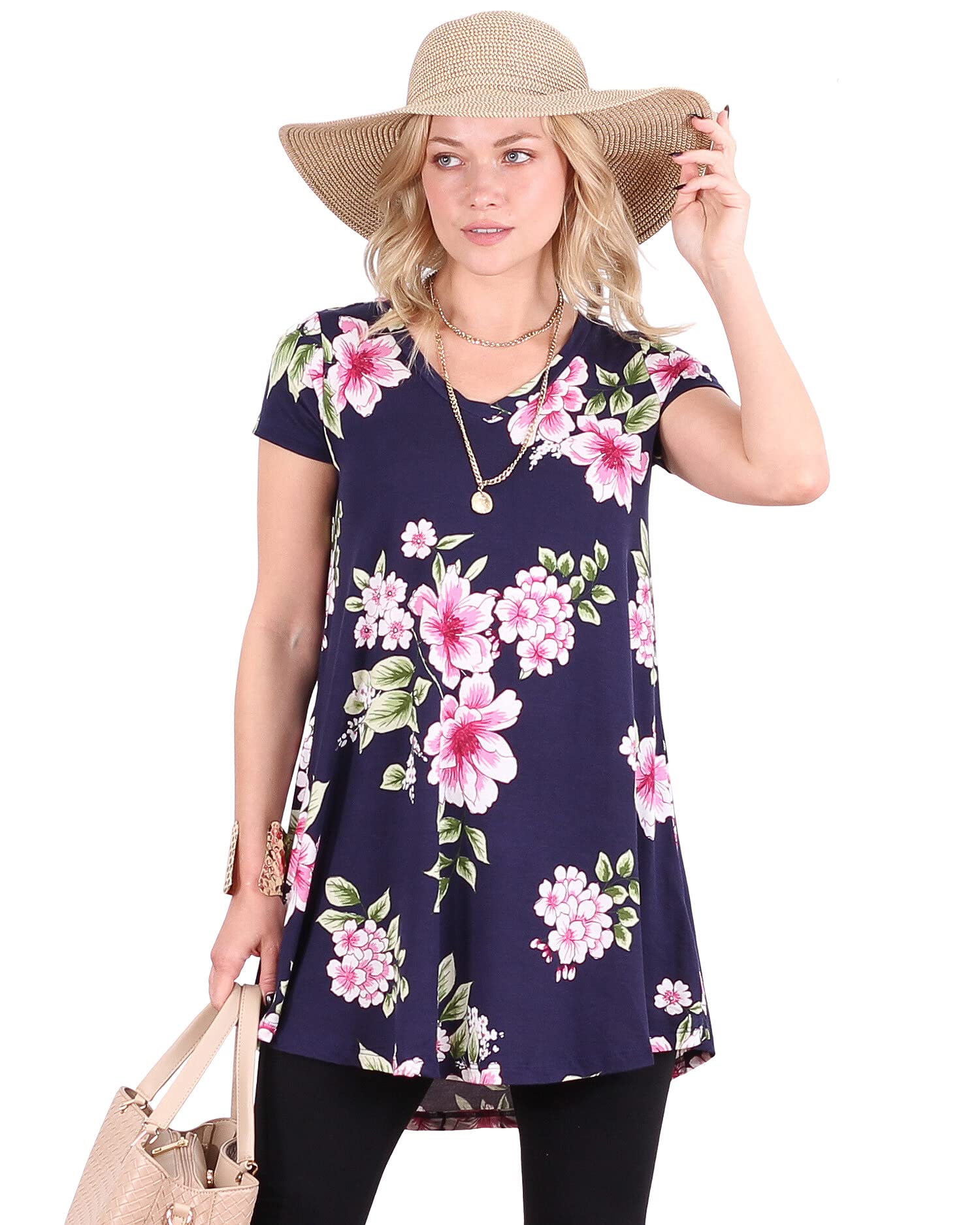 Popana Womens Short Sleeve Summer Tunic Tops to Wear with Leggings Loose Fit Made in USA Floral