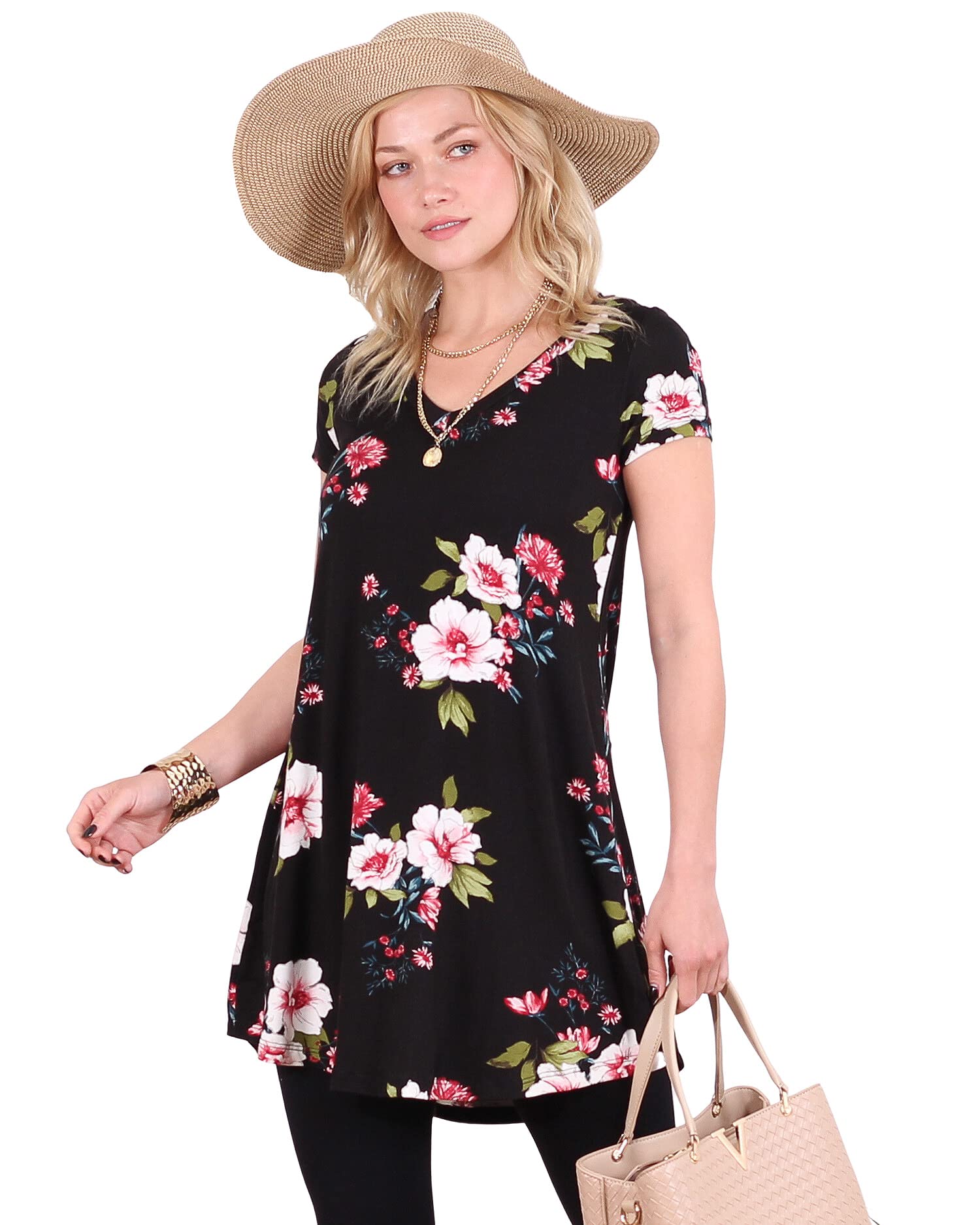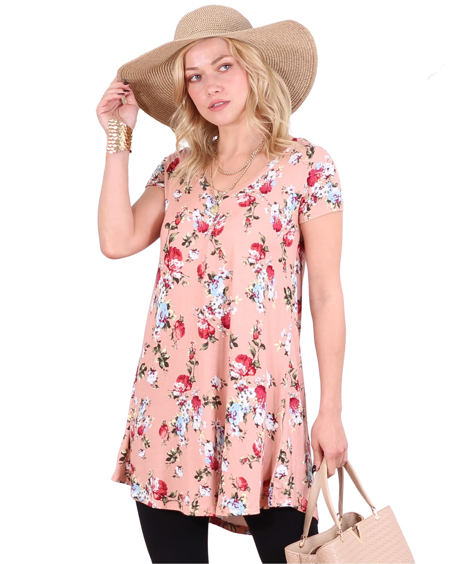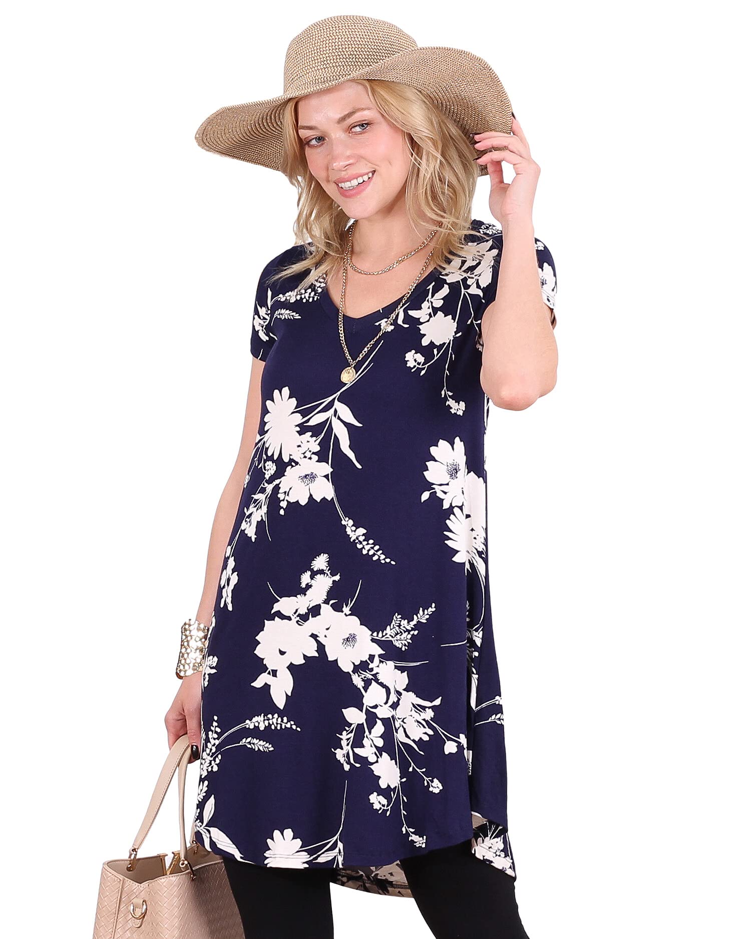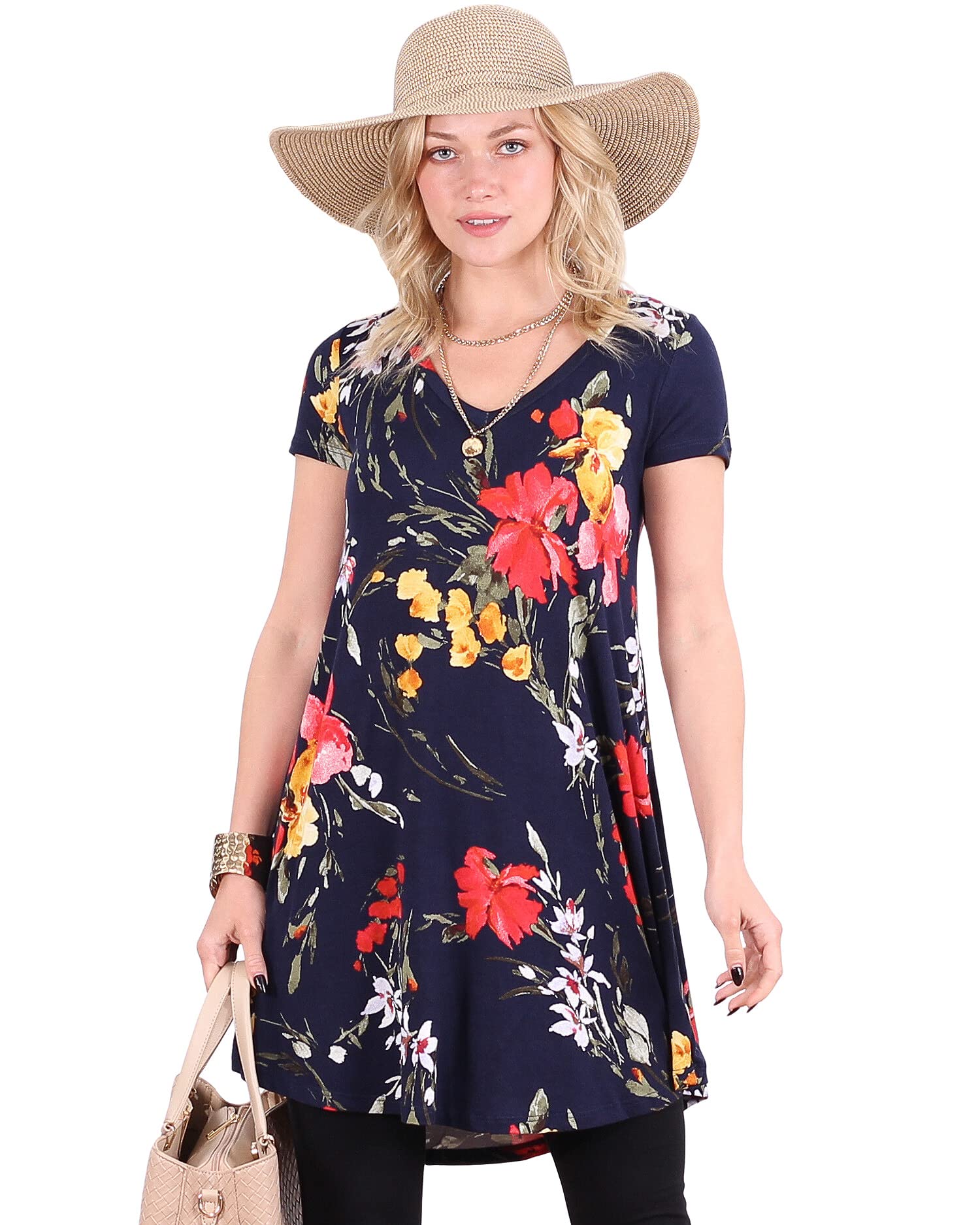 Popana Womens Short Sleeve Summer Tunic Tops to Wear with Leggings Loose Fit Made in USA Floral