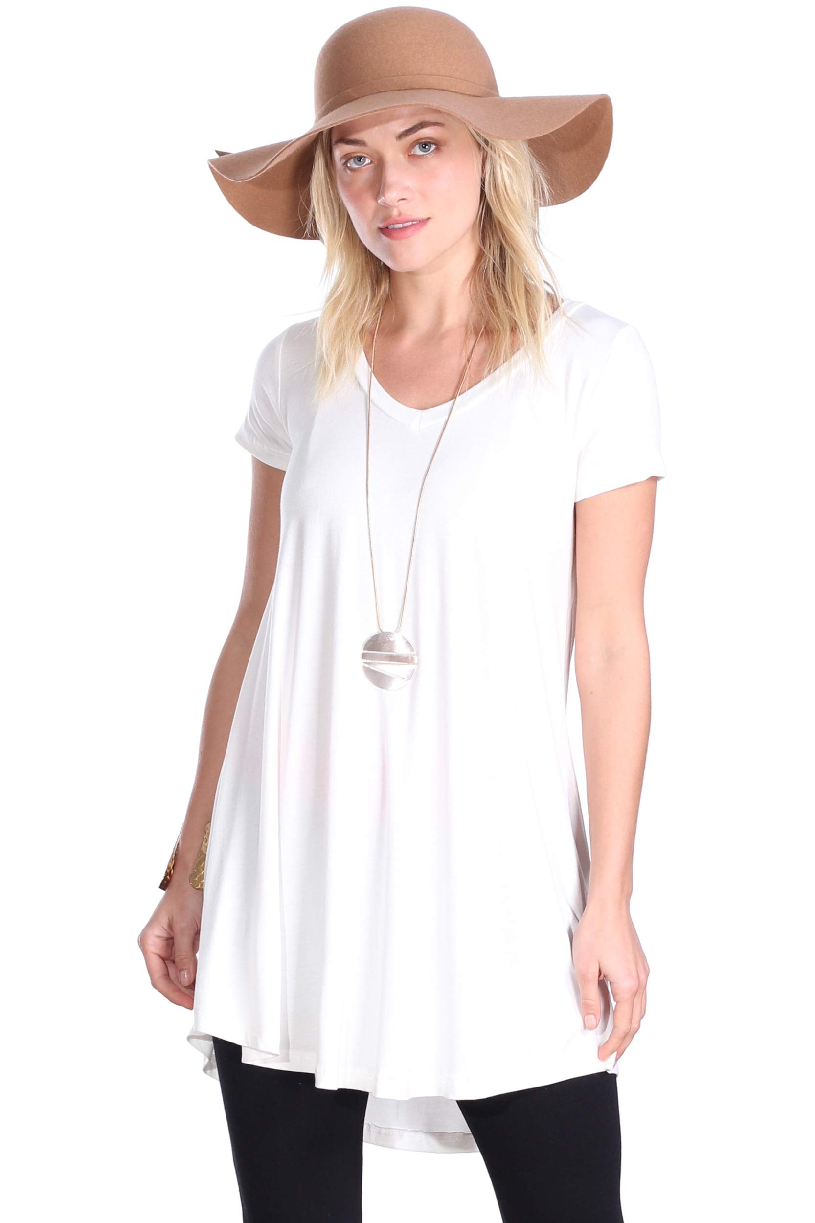 Popana Womens Short Sleeve Summer Tunic Tops to Wear with Leggings Loose Fit Made in USA Pearl