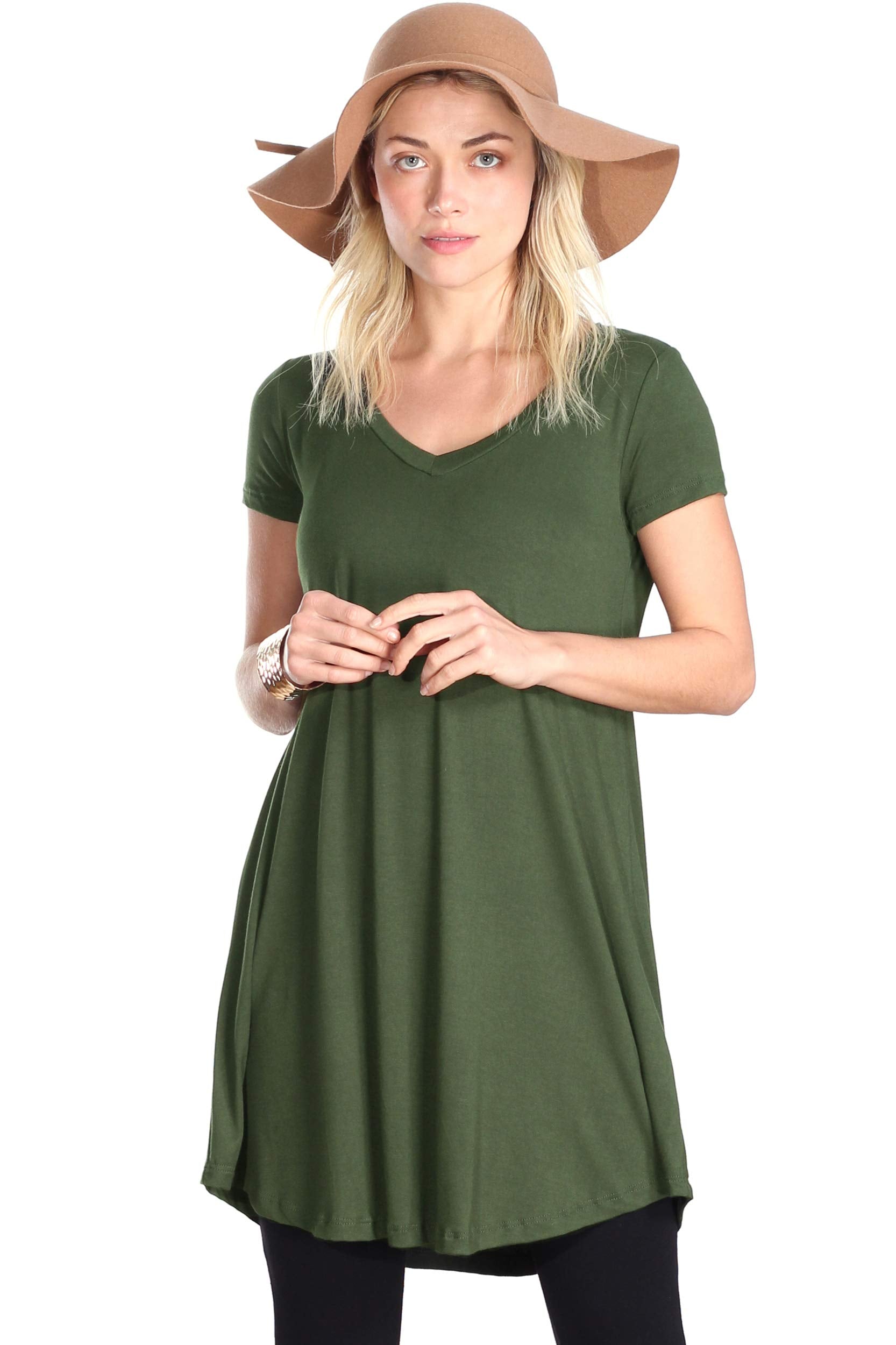 Popana Womens Short Sleeve Summer Tunic Tops to Wear with Leggings Loose Fit Made in USA Olive
