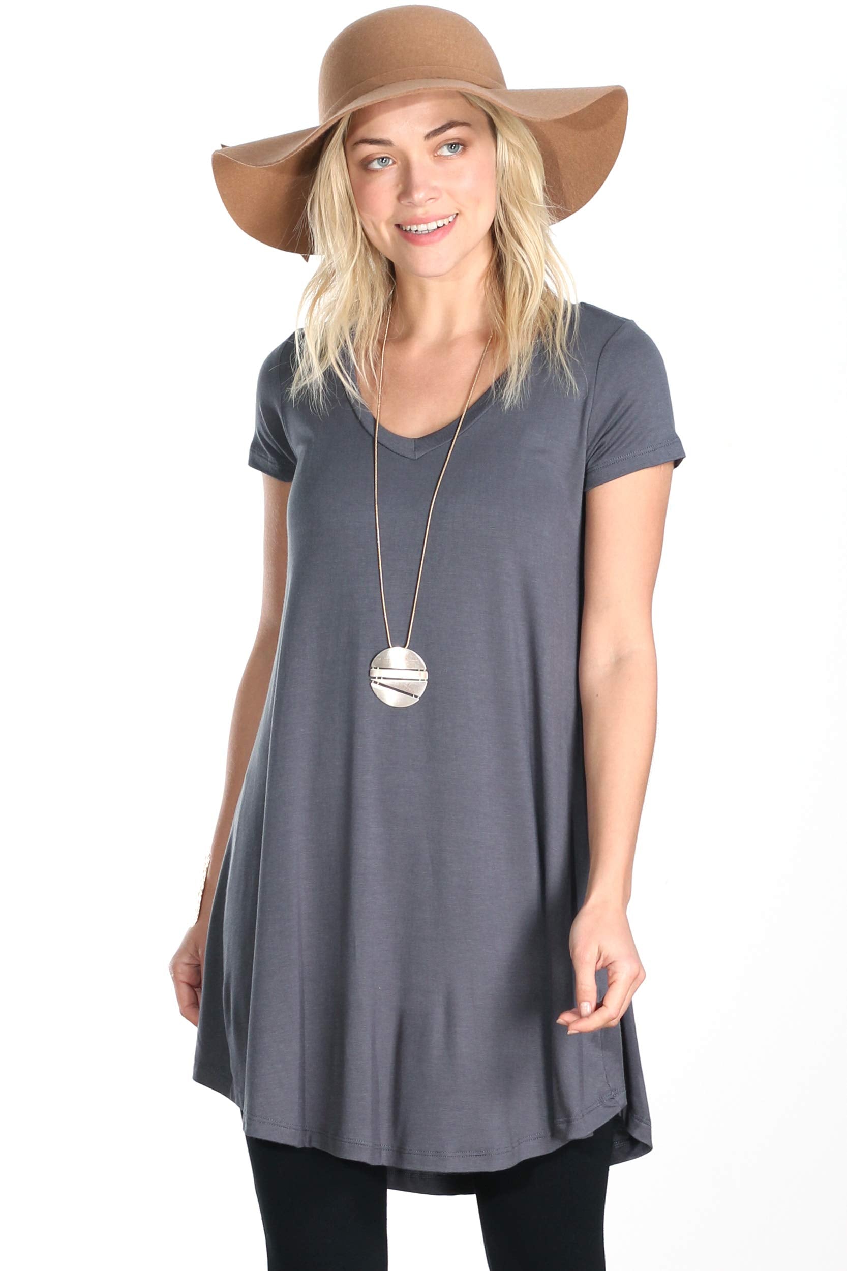 Popana Womens Short Sleeve Summer Tunic Tops to Wear with Leggings Loose Fit Made in USA Slate