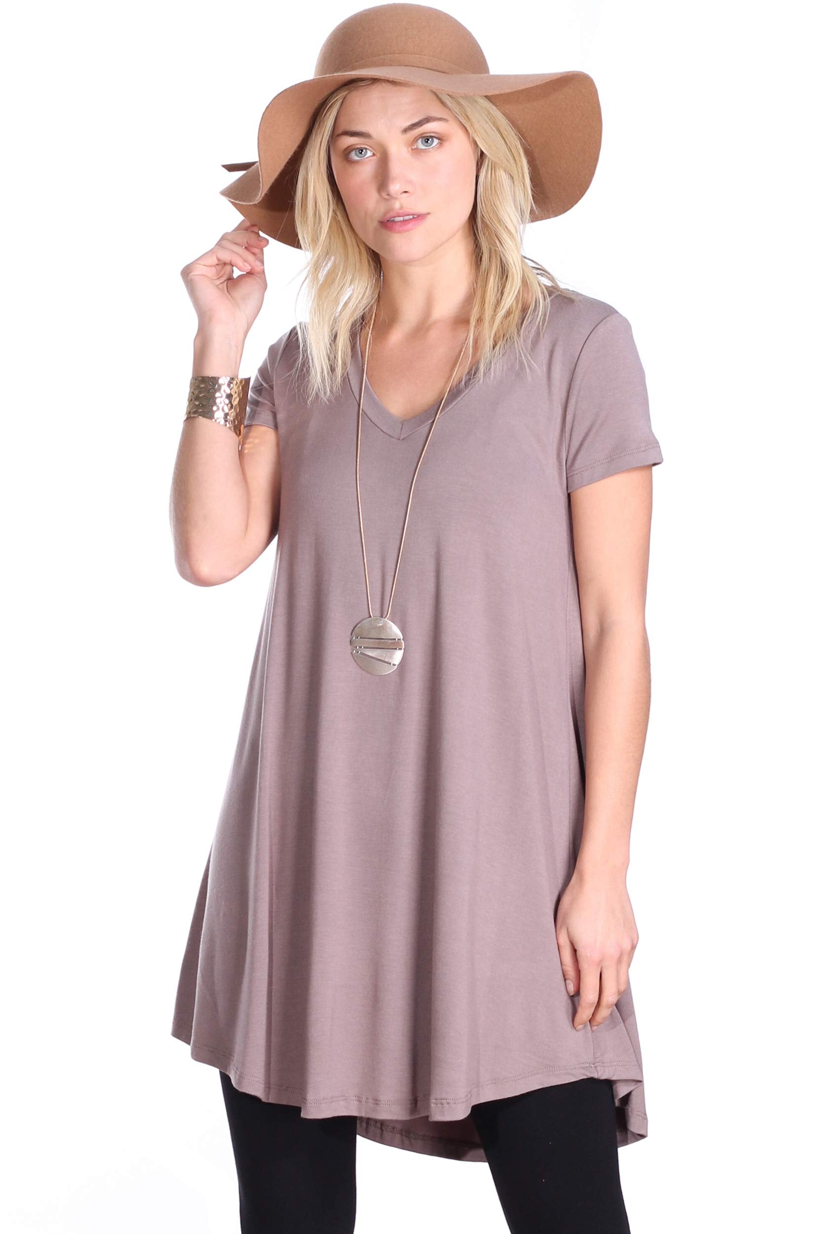 Popana Womens Short Sleeve Summer Tunic Tops to Wear with Leggings Loose Fit Made in USA Toffee