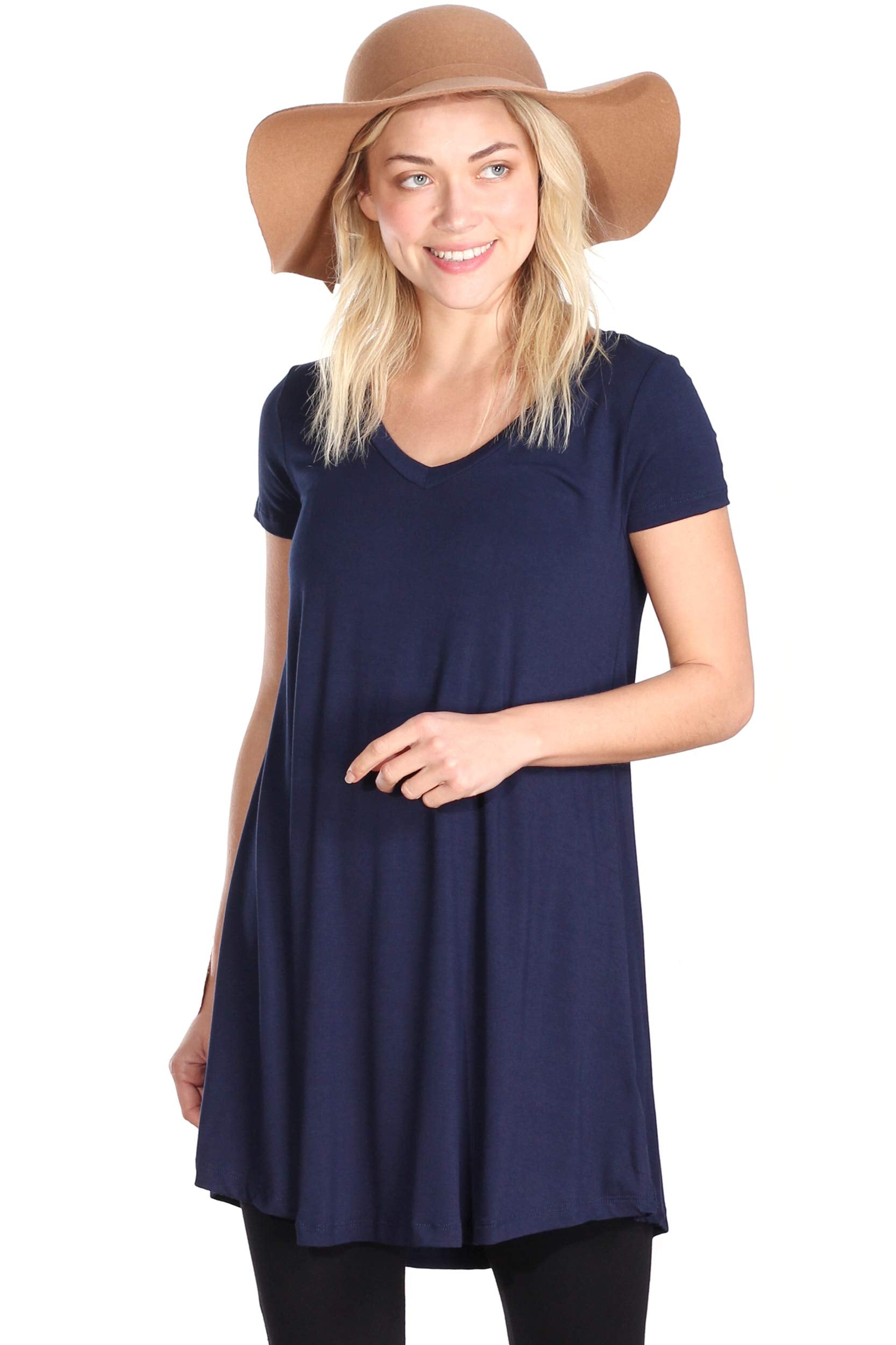 Popana Womens Short Sleeve Summer Tunic Tops to Wear with Leggings Loose Fit Made in USA Navy