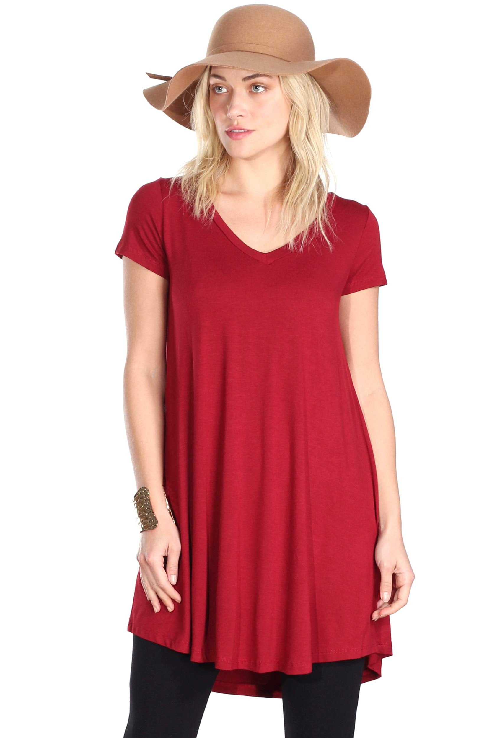 Popana Womens Short Sleeve Summer Tunic Tops to Wear with Leggings Loose Fit Made in USA Burgundy