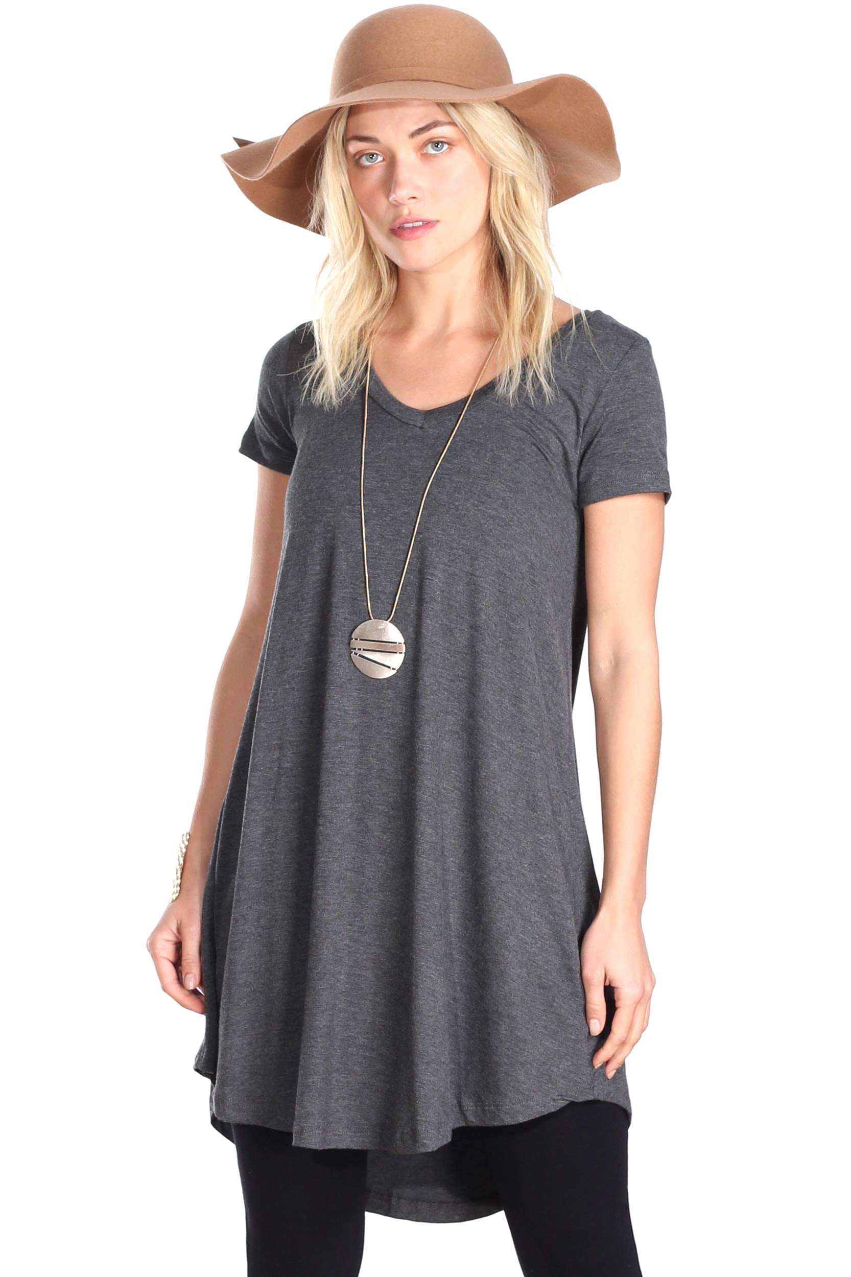 Popana Womens Short Sleeve Summer Tunic Tops to Wear with Leggings Loose Fit Made in USA Charcoal
