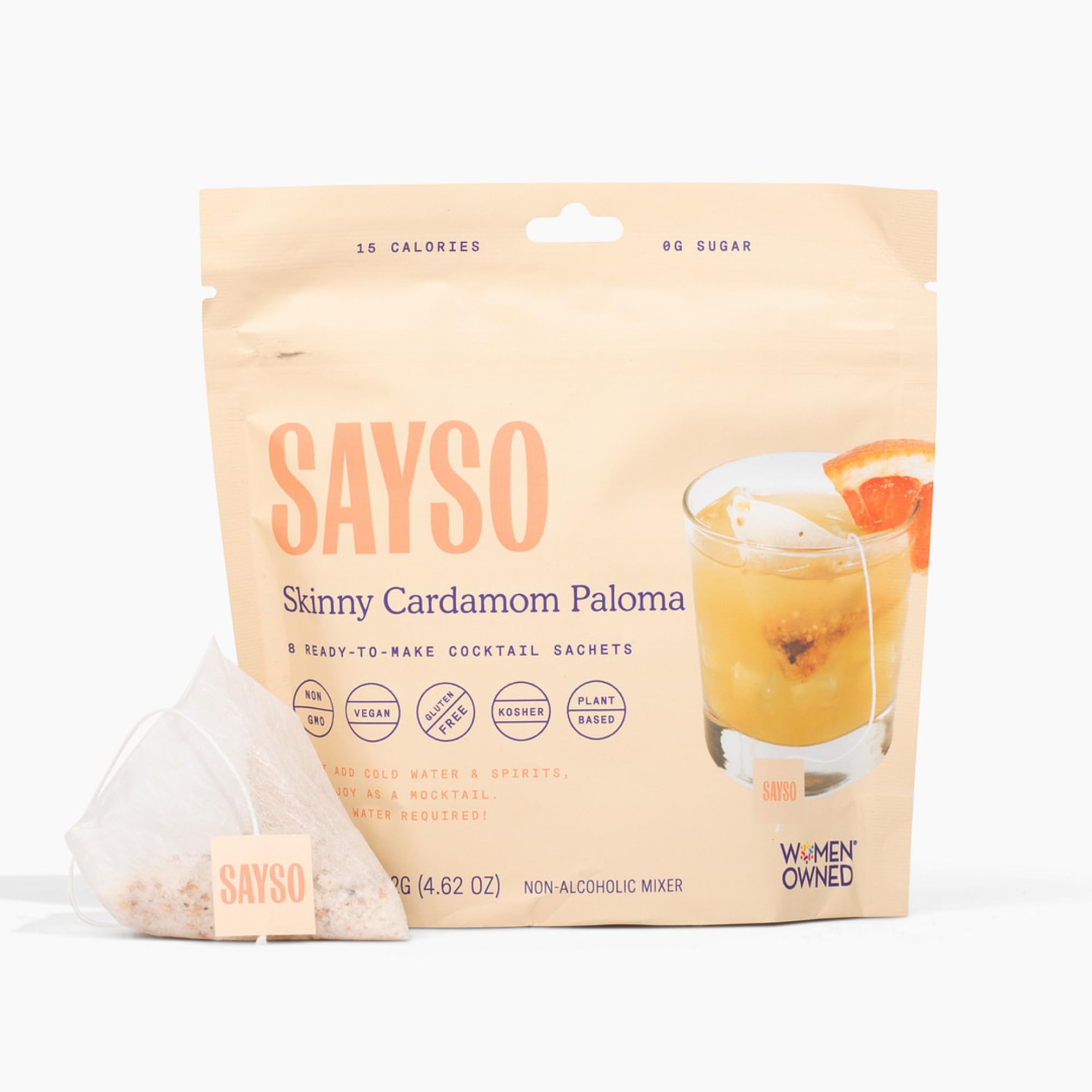 SAYSO Skinny Cardamom Paloma | The Original Craft Cocktail Tea Bag Mixer | Organic, Certified Gluten-free, Non-GMO |< 15 Cal, 0g Sugar, Steep in Cold Water & Spirits, For a Perfect Mocktail, 8 count