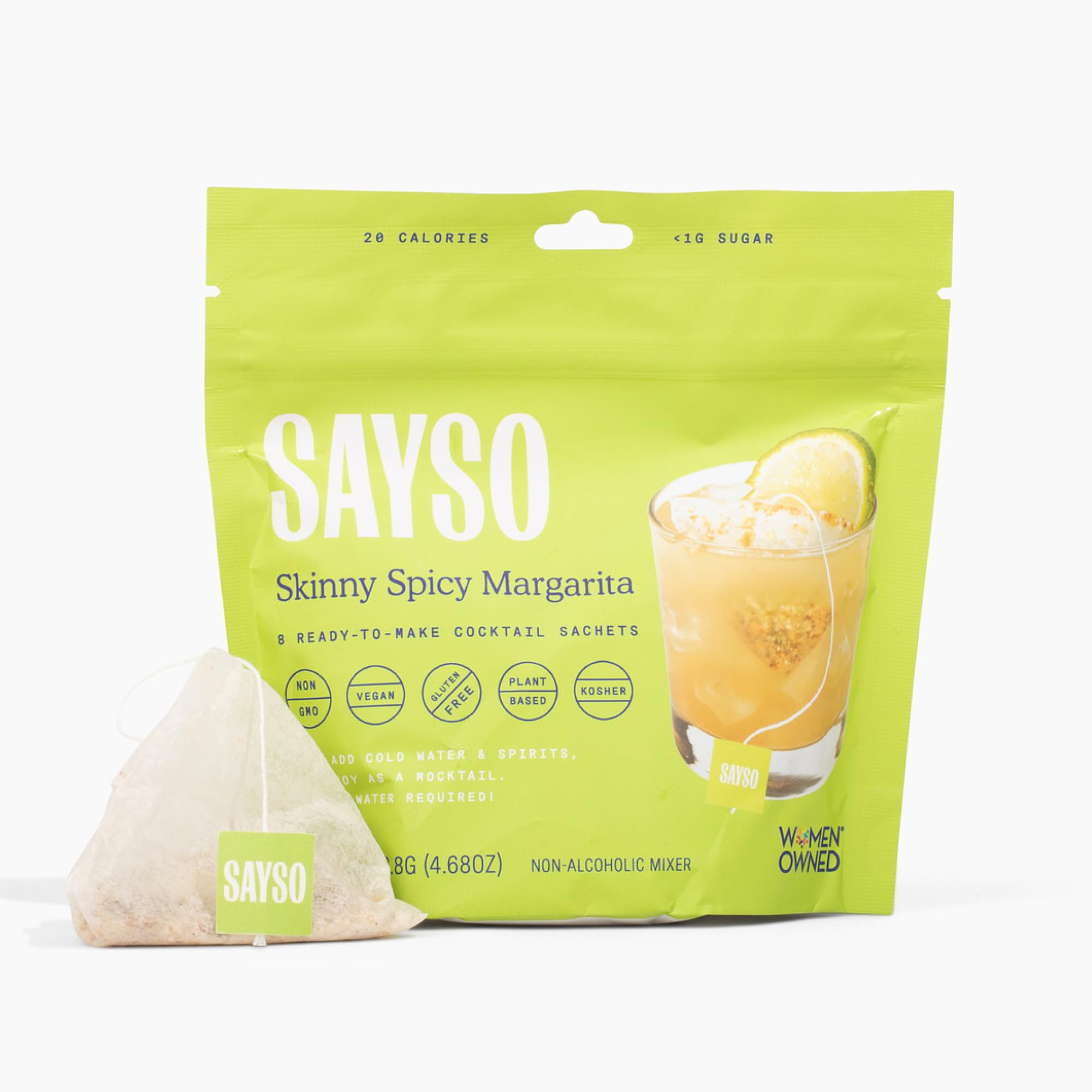 SAYSO Skinny Spicy Margarita Original Cocktail Tea Bag | Cocktail or Mocktail in Under 1 Min, Without Hot Water, <1G Sugar, 20 Calories, Non-GMO, Gluten-free, Kosher & Vegan Mixer, 8 count