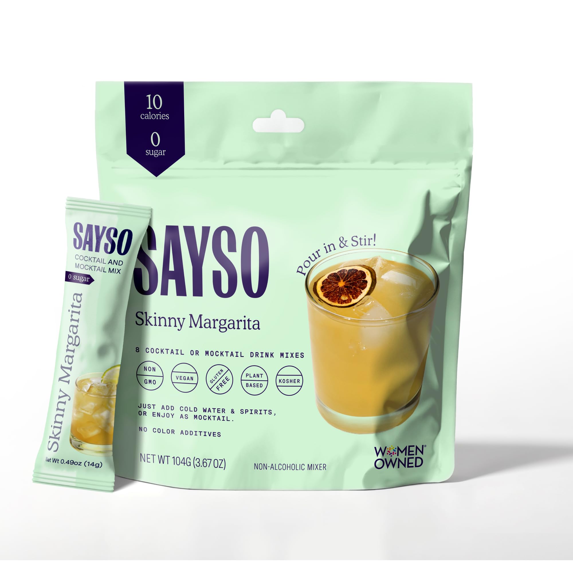 SAYSO Skinny Margarita Cocktail Sticks | Craft Cocktail or Mocktail in 1 Min, Just Add Water + Spirits (0g Sugar, 15 Calories, Vegan, Gluten-Free, Kosher, Non-GMO), 8 Single-Serve Mixers