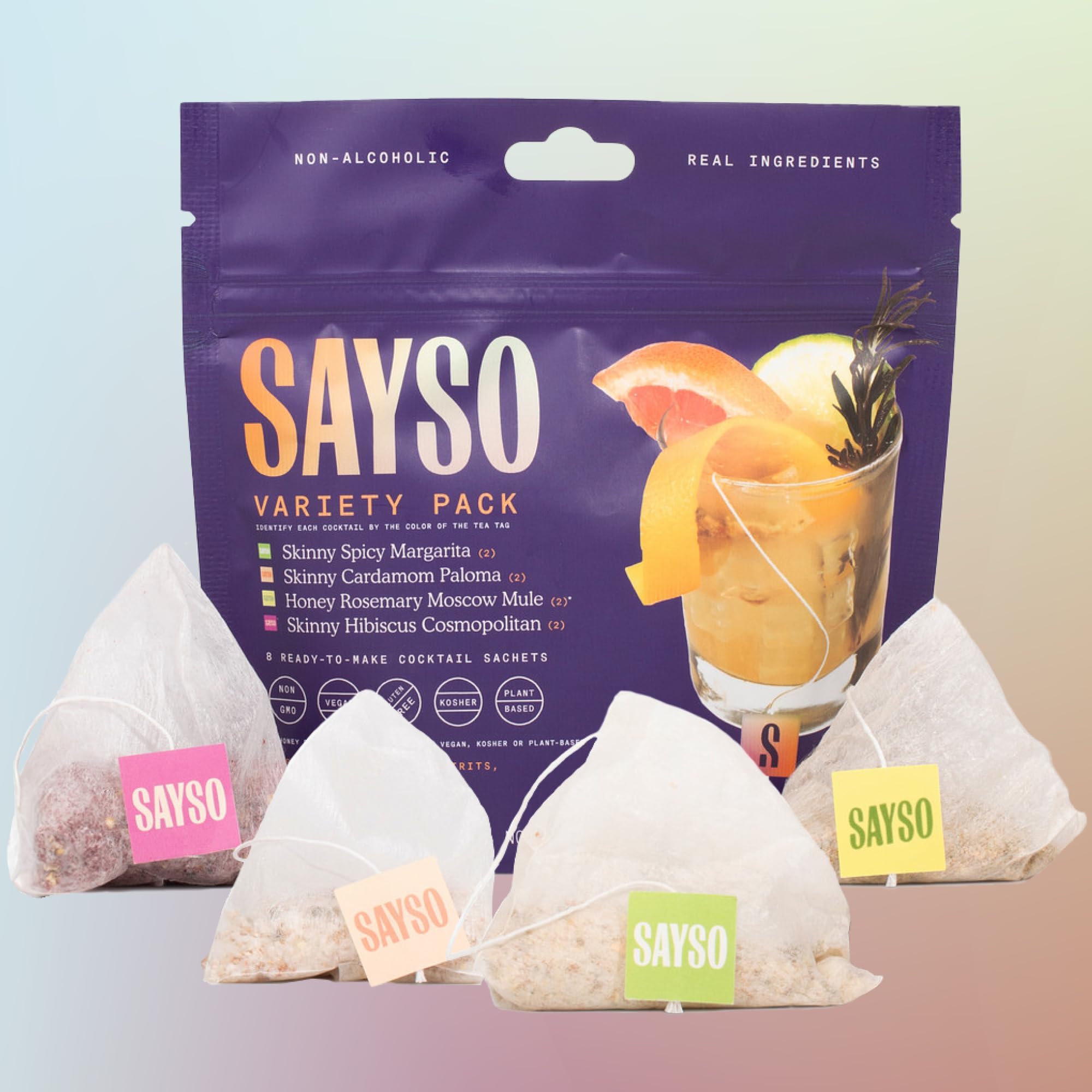 SAYSO Spicy Margarita, Cardamom Paloma, and Hibiscus Cosmopolitan (Skinny) & Honey Rosemary Moscow Mule Cocktail Mix Variety Pack | (Low-Calorie & Low Sugar Cocktail Tea Bags), 8-Pack Assorted