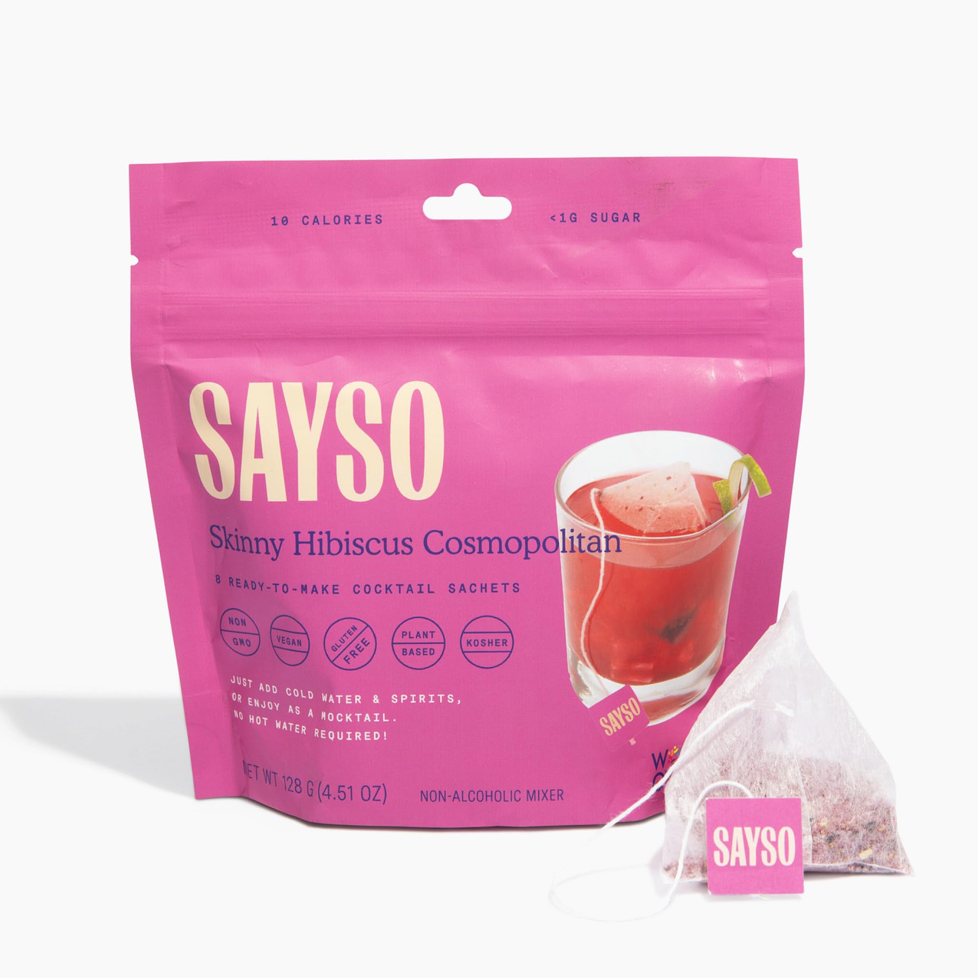 SAYSO: Skinny Hibiscus Cosmo Craft Cocktail Tea Bag | Enjoy an Instant Cosmopolitan or Mocktail in Under 1 Min, <1G Sugar, 10 Calories, Vegan, Kosher, Non-GMO, 8 Count