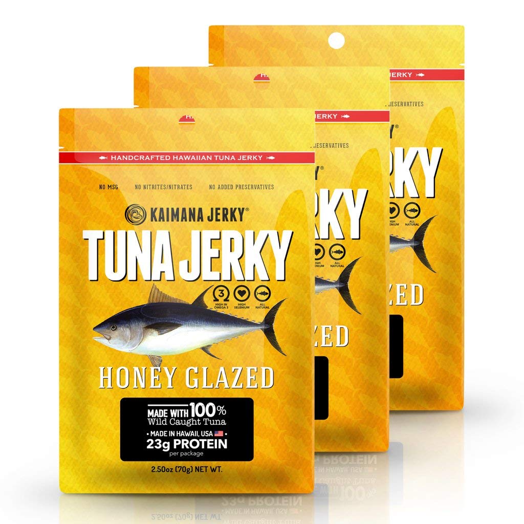 Kaimana Wild-Caught Ahi Tuna Jerky - Honey Glazed | Rich in Omega-3s & High in Protein | All-Natural & Organic Fish Jerky (3 pack, 2 oz)