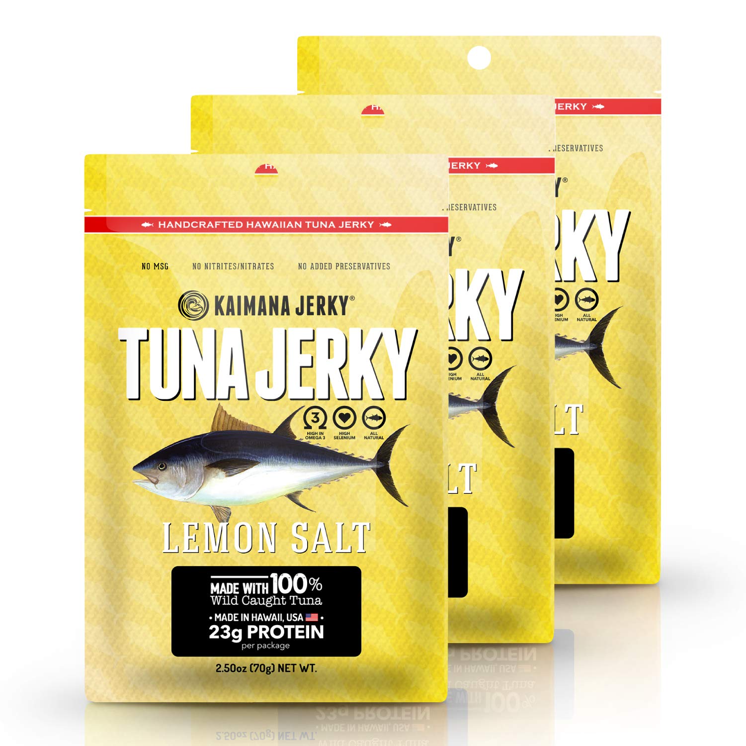 Kaimana Wild-Caught Ahi Tuna Jerky - Lemon Salt | Rich in Omega-3s & High in Protein | All-Natural & Organic Fish Jerky (3 pack, 2 oz)