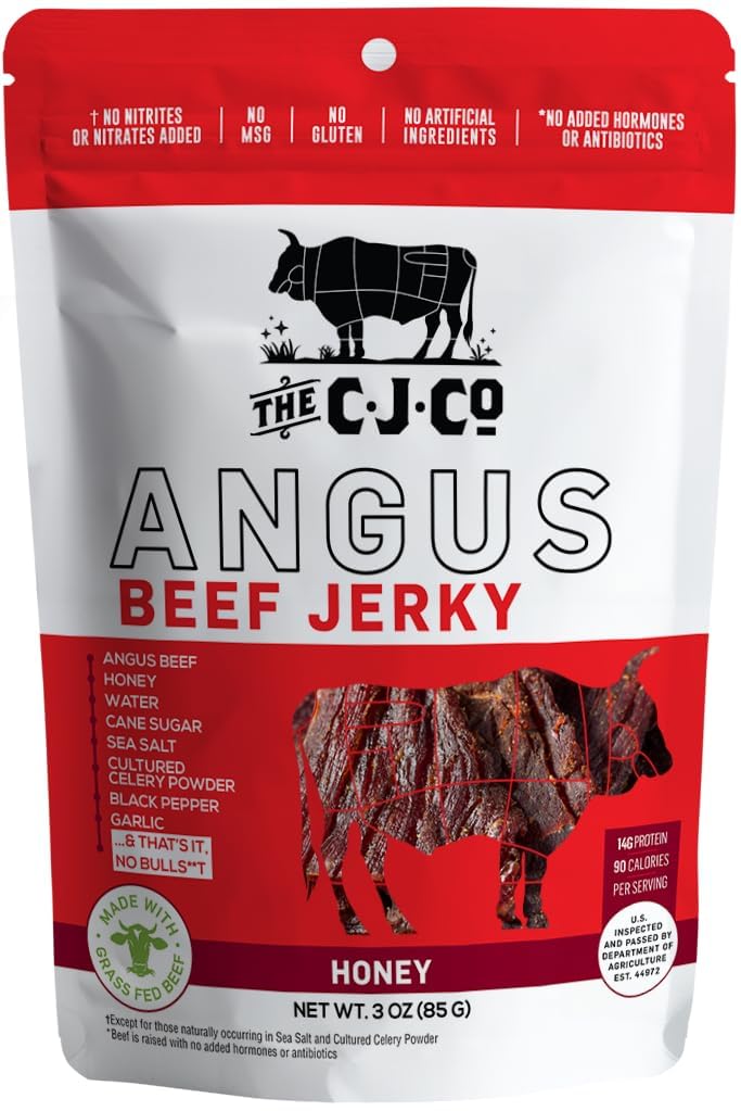 Clean Jerky Co. Grass Fed Beef Jerky | Honey – Flavorful Protein Snack | Made with 100% Beef | No MSG, No Nitrates, No High Fructose Corn Syrup, No Junk and None of the Bad Stuff