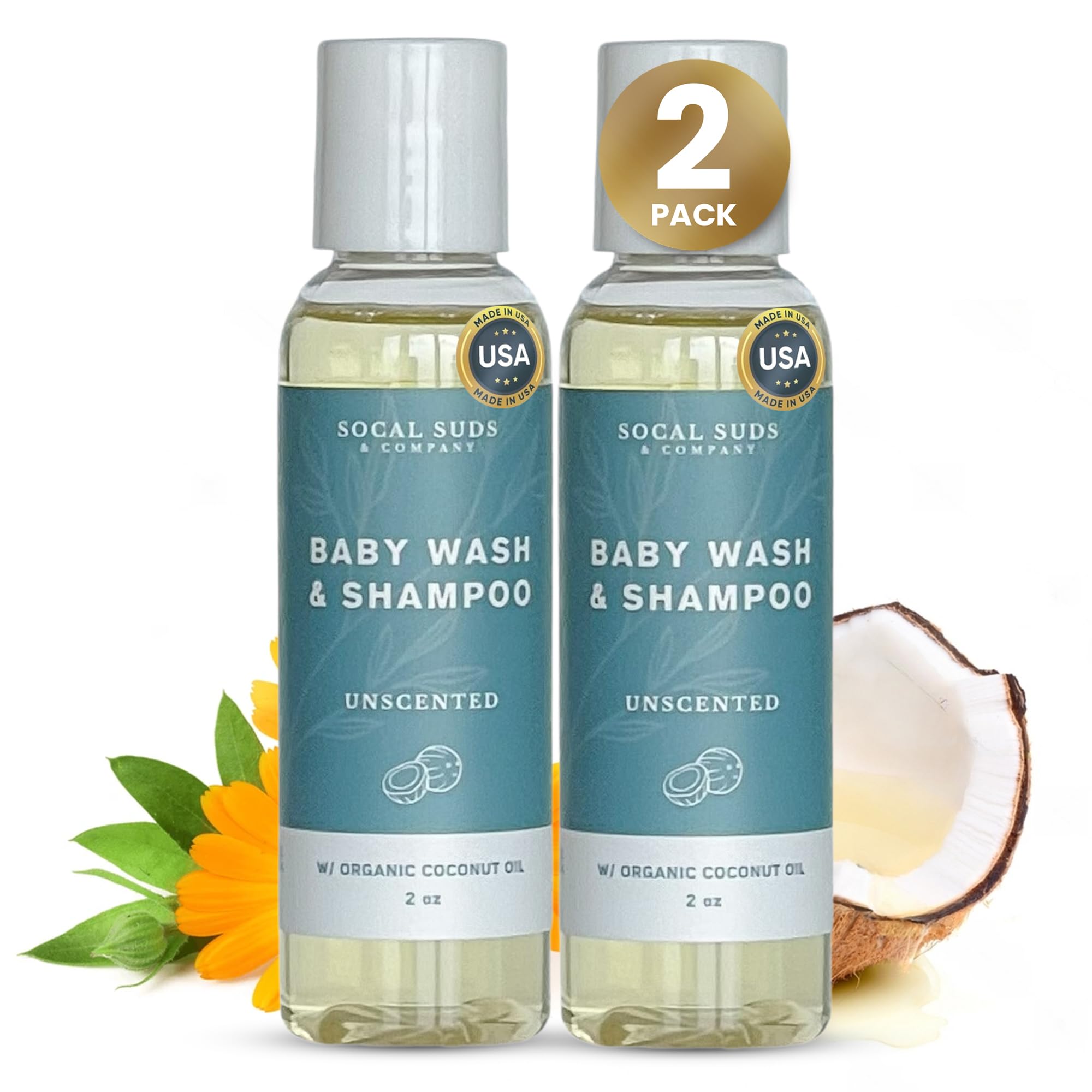 SoCal Suds & Company 2oz Organic Baby Wash & Shampoo- Fragrance Free- 2 Pack