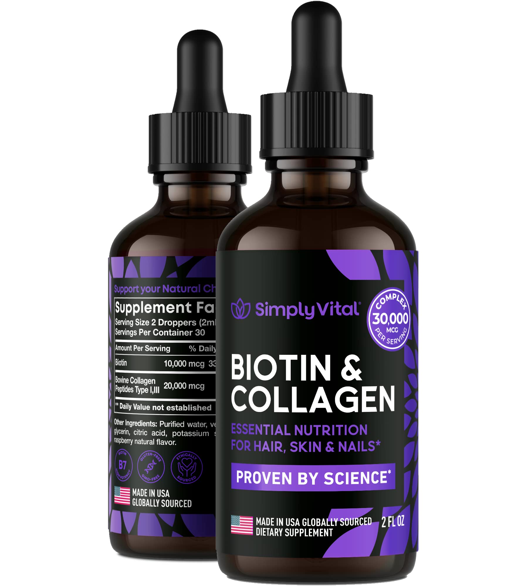 Brand: SimplyVital Drops Features: Biotin with Collagen Peptides - Simply Vital combines biotin 10,000 mcg and collagen peptides to support...