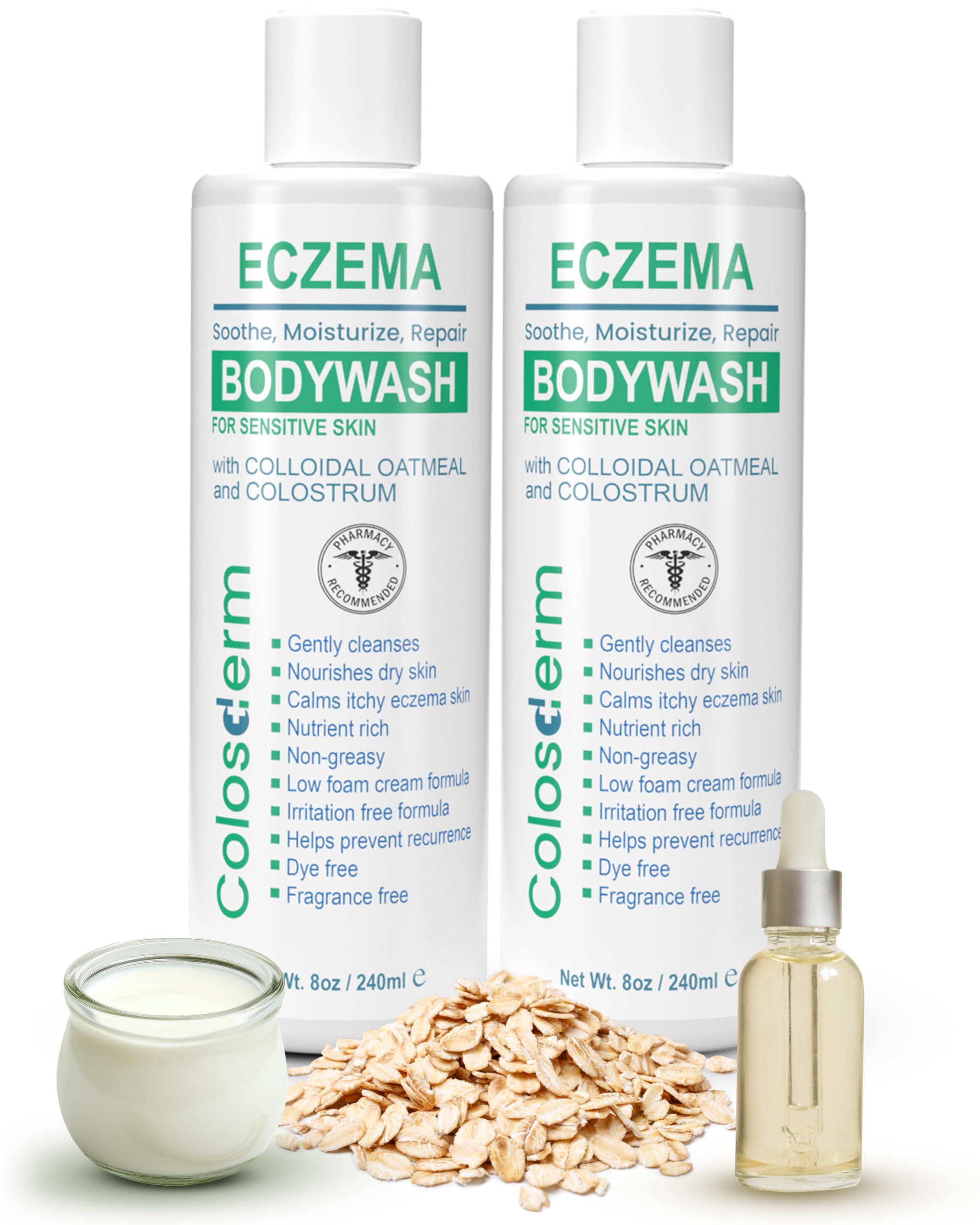 Eczema Cream Body Wash Sensitive Skin for Women & Men - Moisturising Bodywash with Colostrum & Colloidal Oatmeal bath - Gentle Cleanser for Dry Skin, Redness & Irritation, 16 fl oz, Made in USA