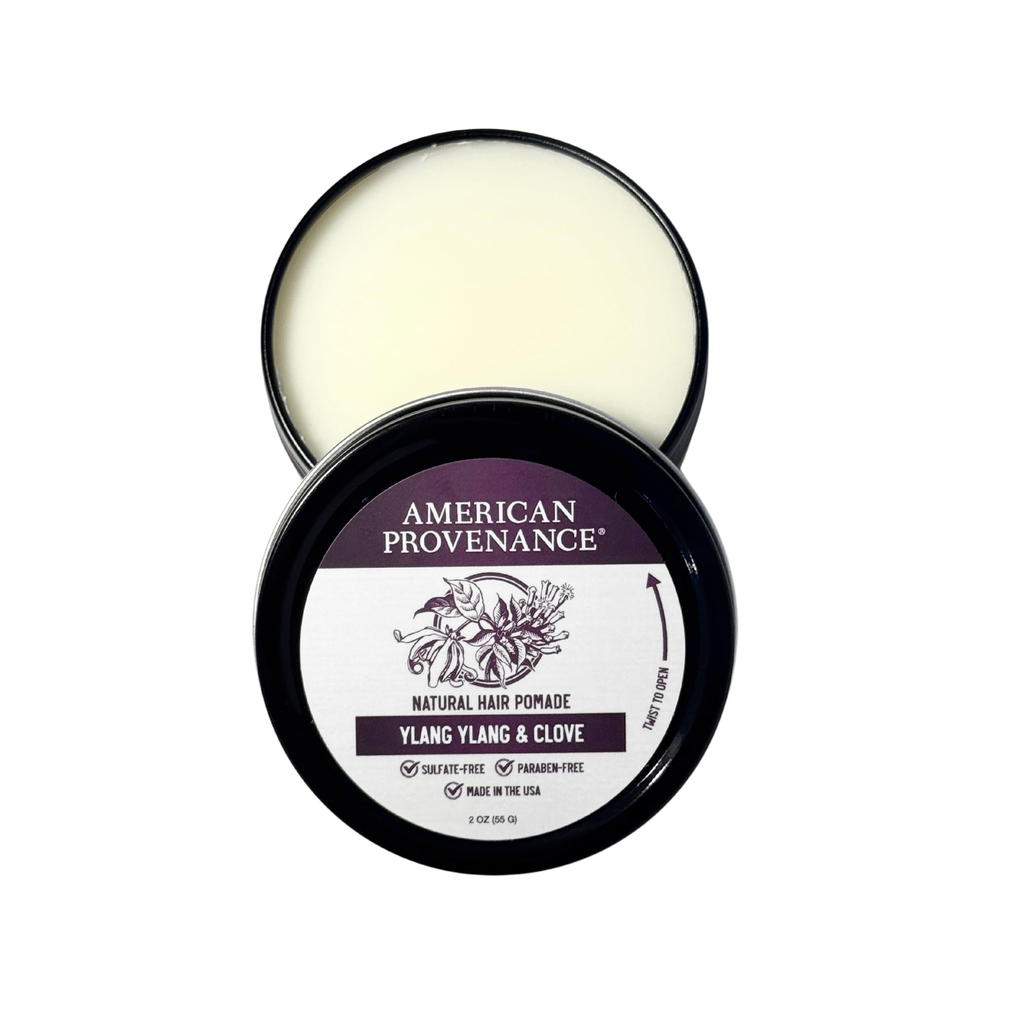 American Provenance Premium Natural Hair Pomade for Women and Men with Shea Butter, Jojoba Oil, Argan Oil - Grooming Balm that Conditions and Styles Hair | Ylang Ylang & Clove | 2 oz (Pack of 1)