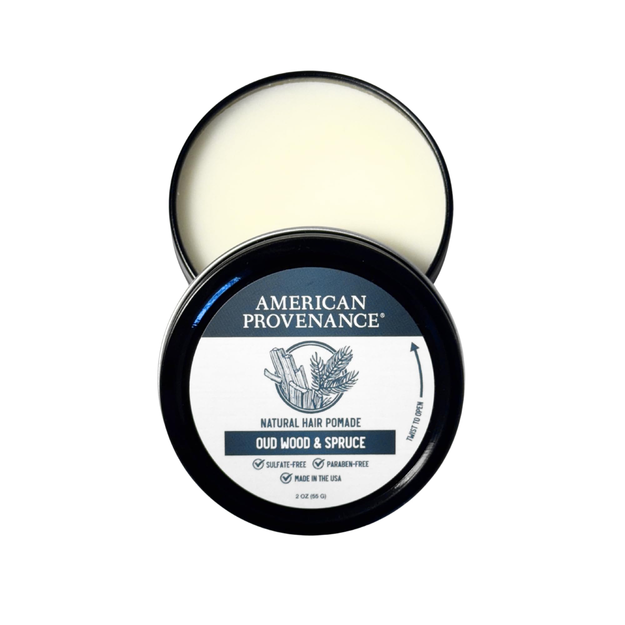 American Provenance Premium Natural Hair Pomade for Women and Men with Shea Butter, Jojoba Oil, Argan Oil - Grooming Balm that Conditions and Styles Hair | Oud Wood & Spruce | 2 oz (Pack of 1)