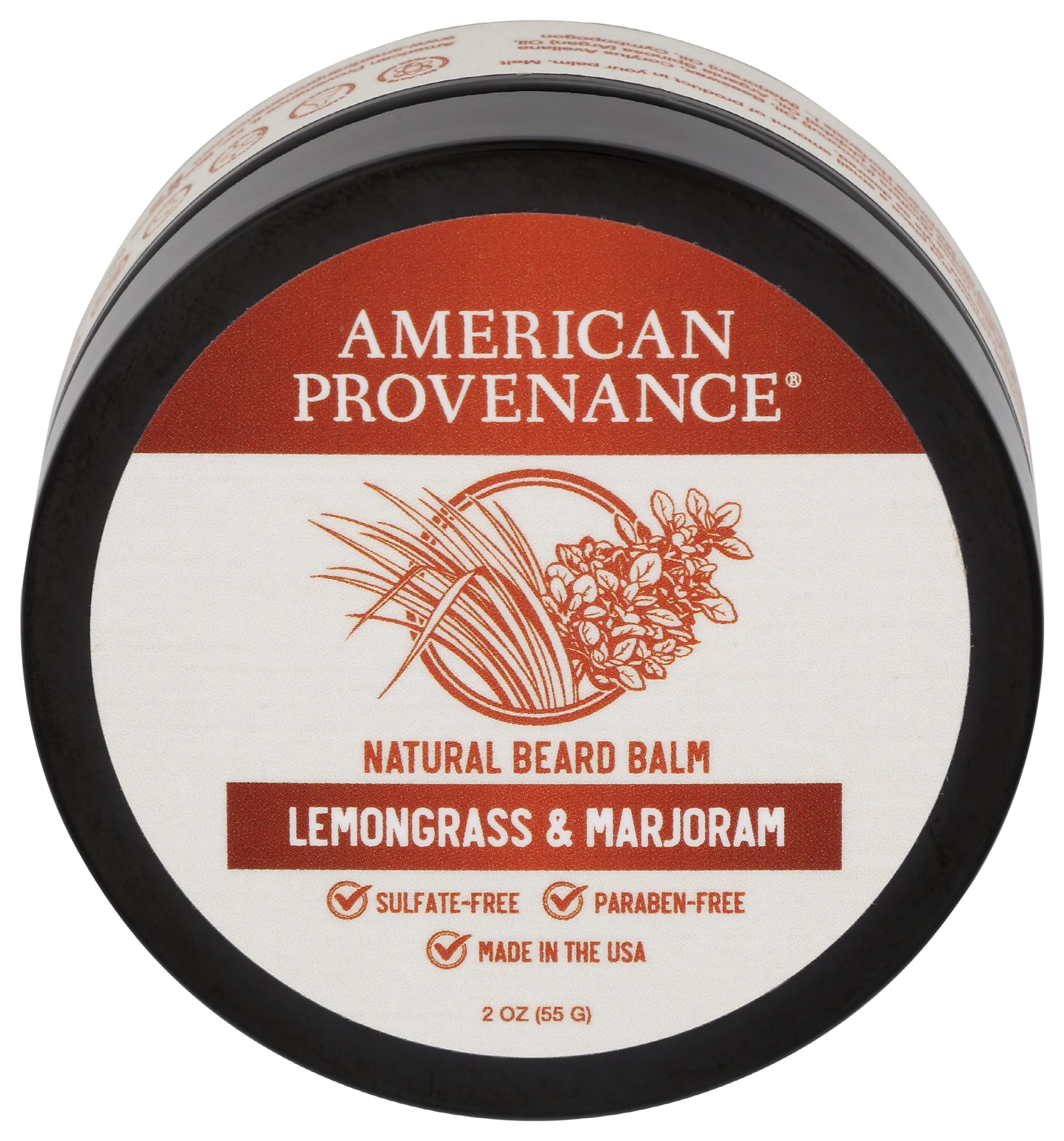 American Provenance Premium Natural Beard and Mustache Balm for Men with Shea Butter, Jojoba Oil, Argan Oil - Grooming Balm that Conditions, Moisturizes and Strenthens Beards and Mustaches of Any Length | Lemongrass & Marjoram, 2 oz (Pack of 1)