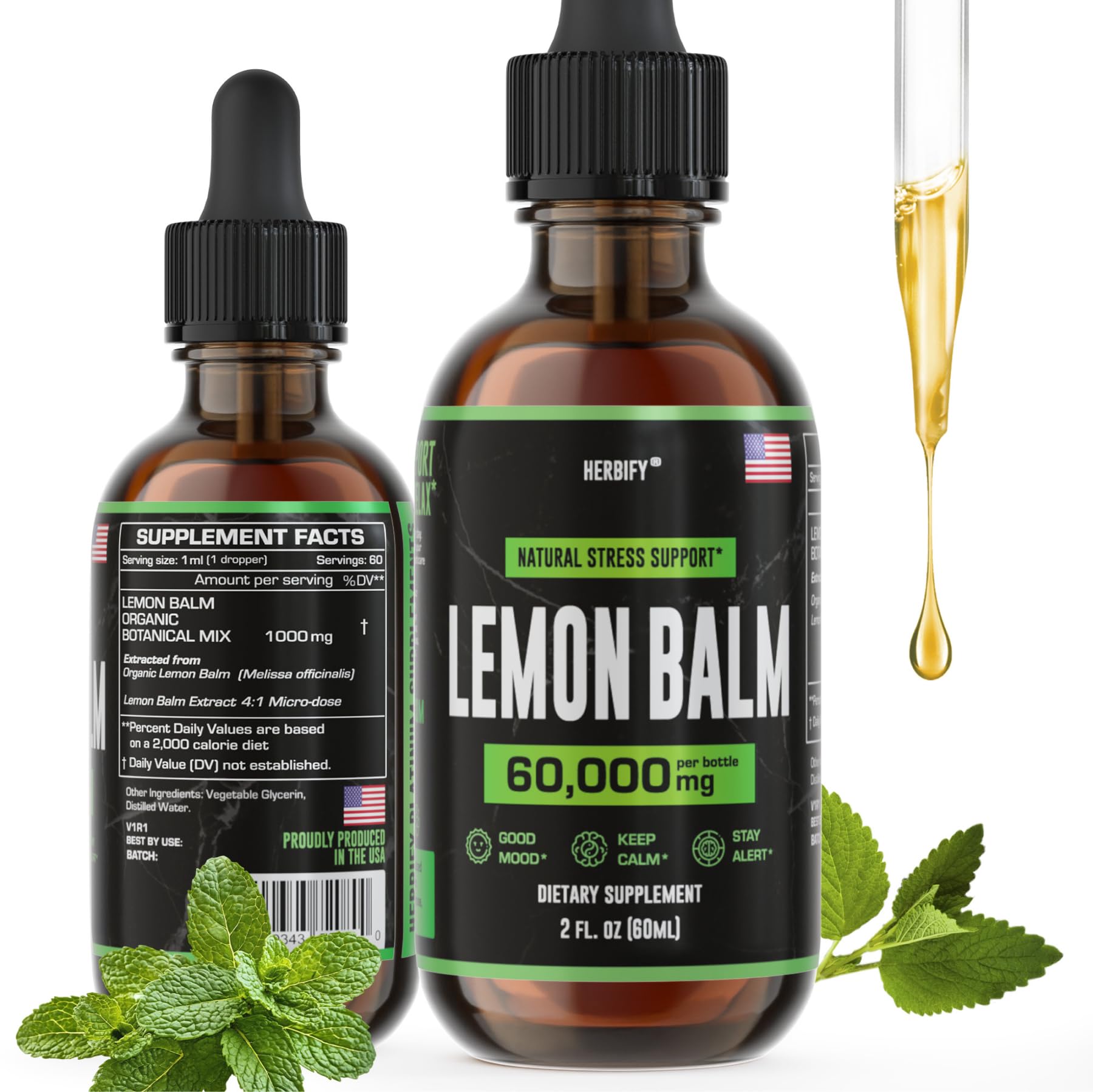 HERBIFY Lemon Balm Tincture - Melissa Officinalis Leaf Liquid Extract - Brain Support and Mood Boost - Lemon Balm Drops for Immune & Cognitive Support - 2 Fl oz