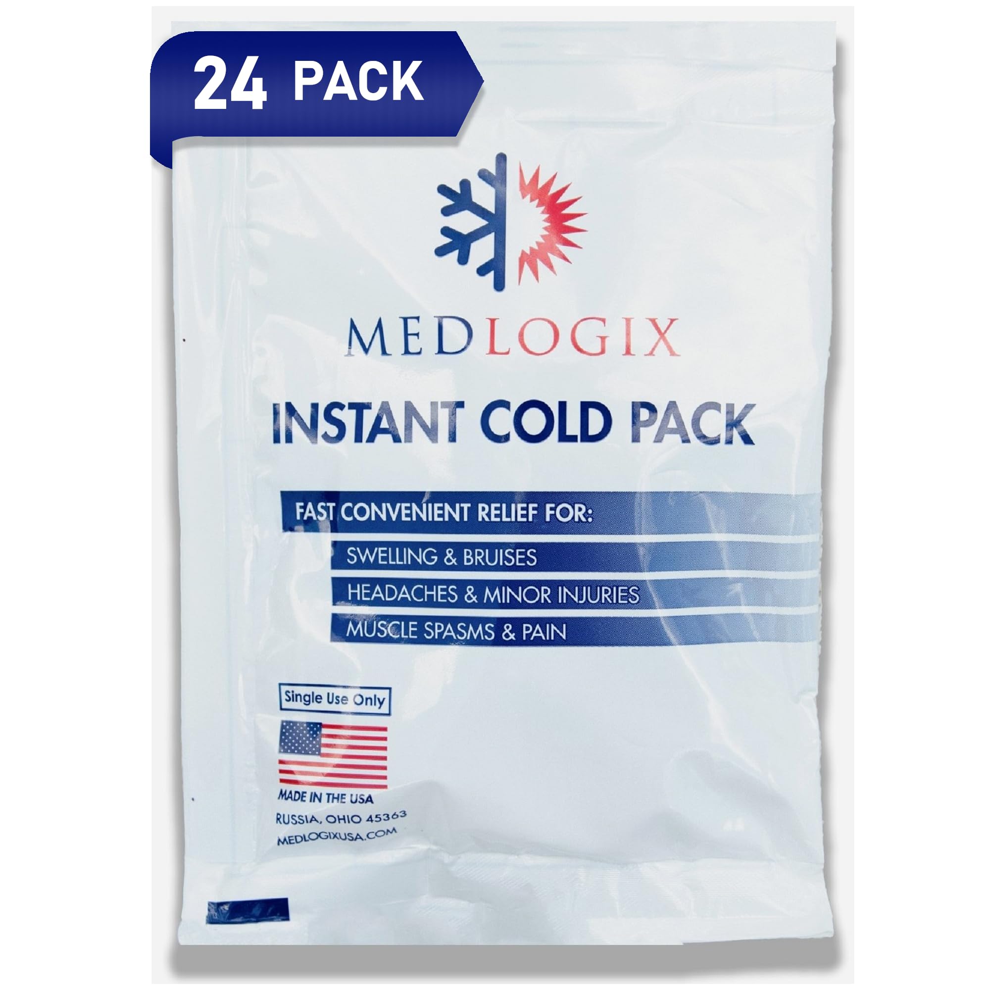 Medlogix Instant Cold Packs | Made in USA | Non-Toxic | 24 Pack 5"x7" | Disposable Ice Cold Compress for First Aid, Pain Relief, Swelling, Hot Flashes, Toothaches, Migraines, Insect Bites