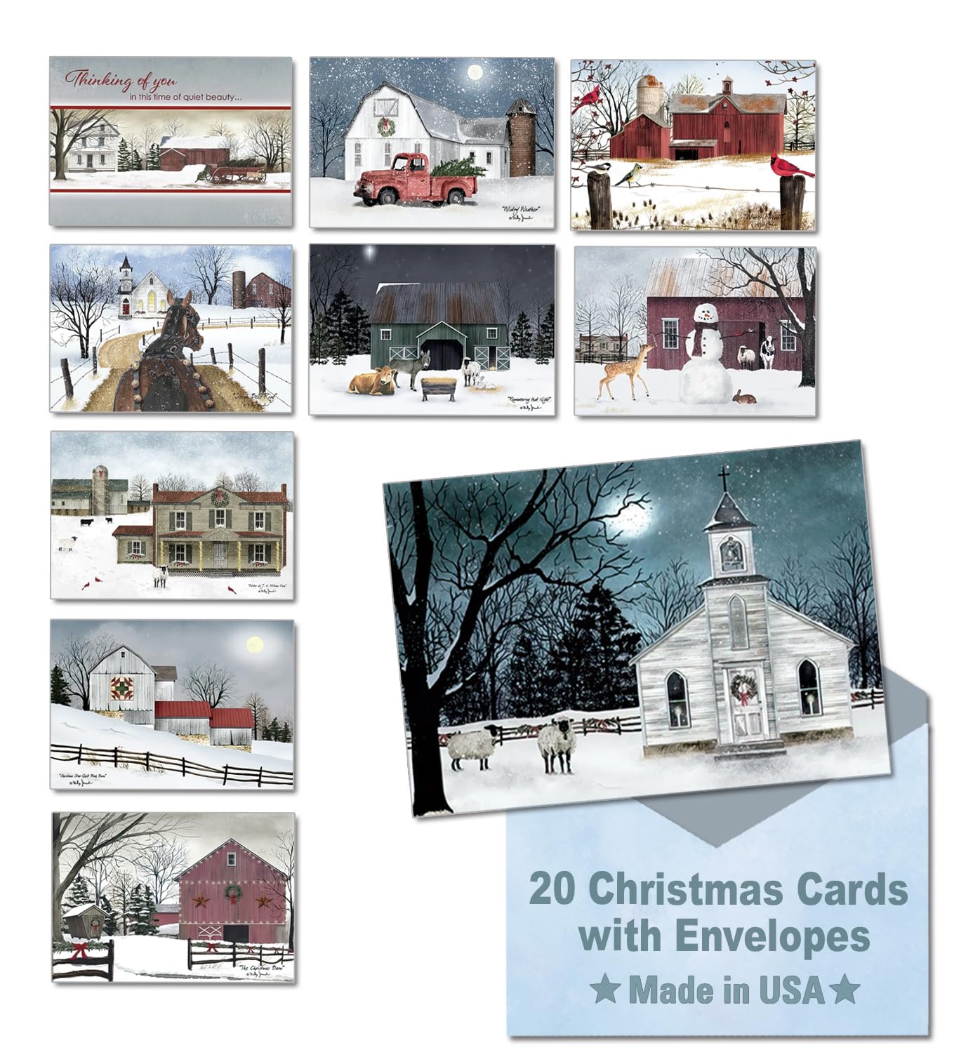 Leanin' Tree - Made In USA - Country Charm - Pack of 20 Boxed Christmas Cards with Envelopes Merry Christmas Cards 2025 Bulk, Perfect for Sending Xmas Holiday Greetings
