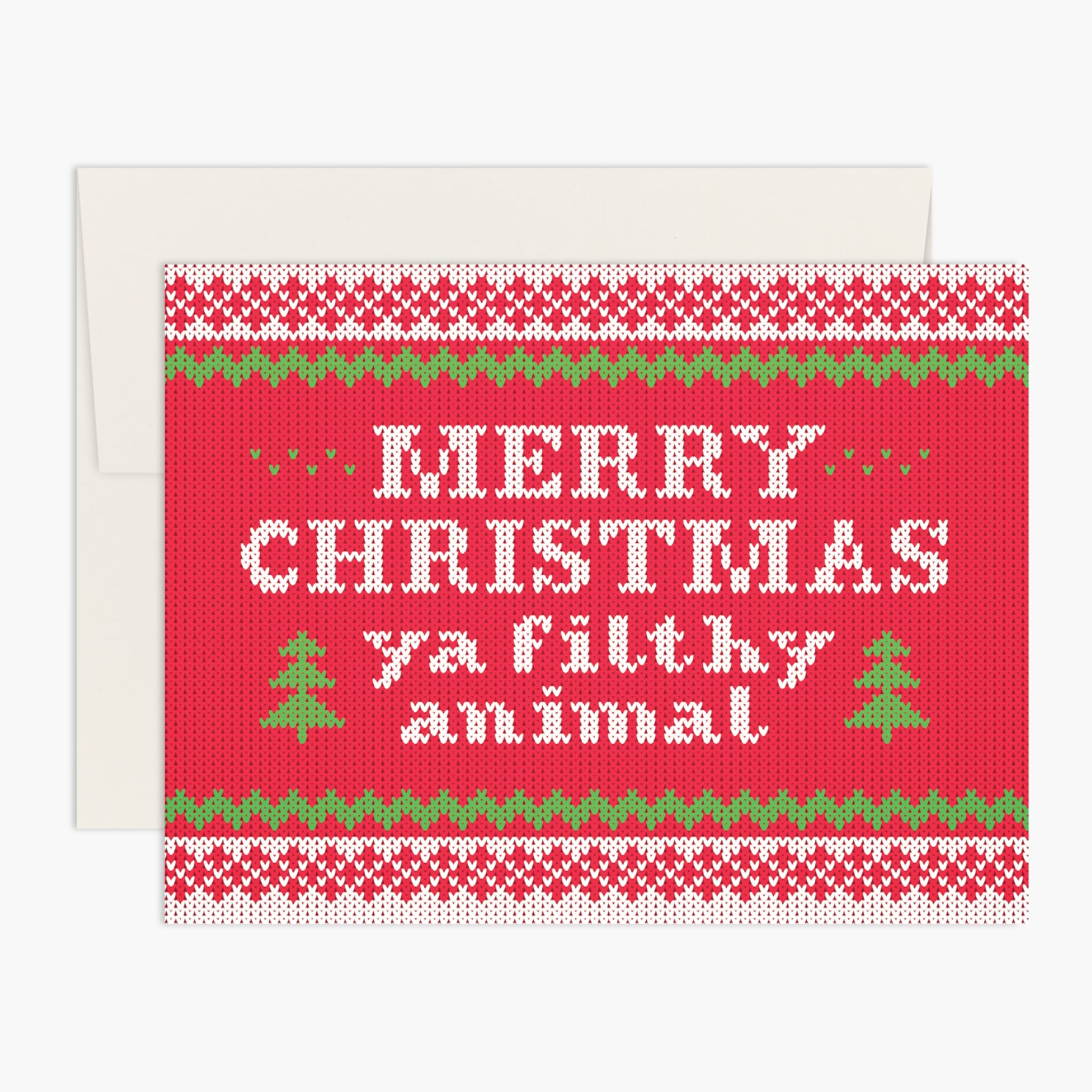 Palmer Street Press - Merry Christmas Ya Filthy Animal: Funny Christmas Cards Box Set - Christmas Sweater Boxed Holiday Cards with Cream Kraft Envelopes - Made in the USA (Set of 8 Cards)