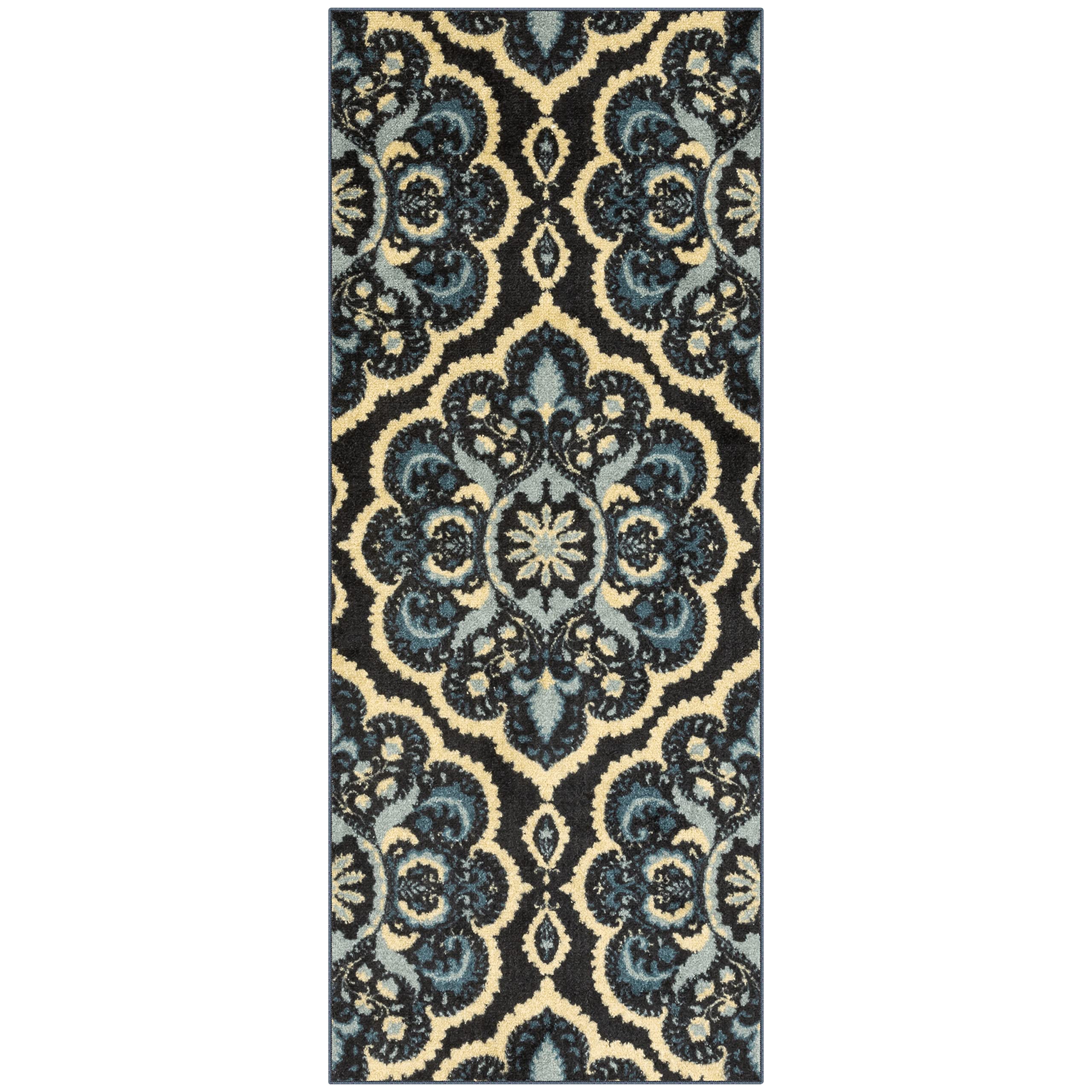 Maples Rugs Vivian Medallion Runner Rug - Made in USA - Washable, Non Slip, Indoor Carpet for Hallway, Kitchen, and Laundry Room, 2'6 x 6', Persian Blue